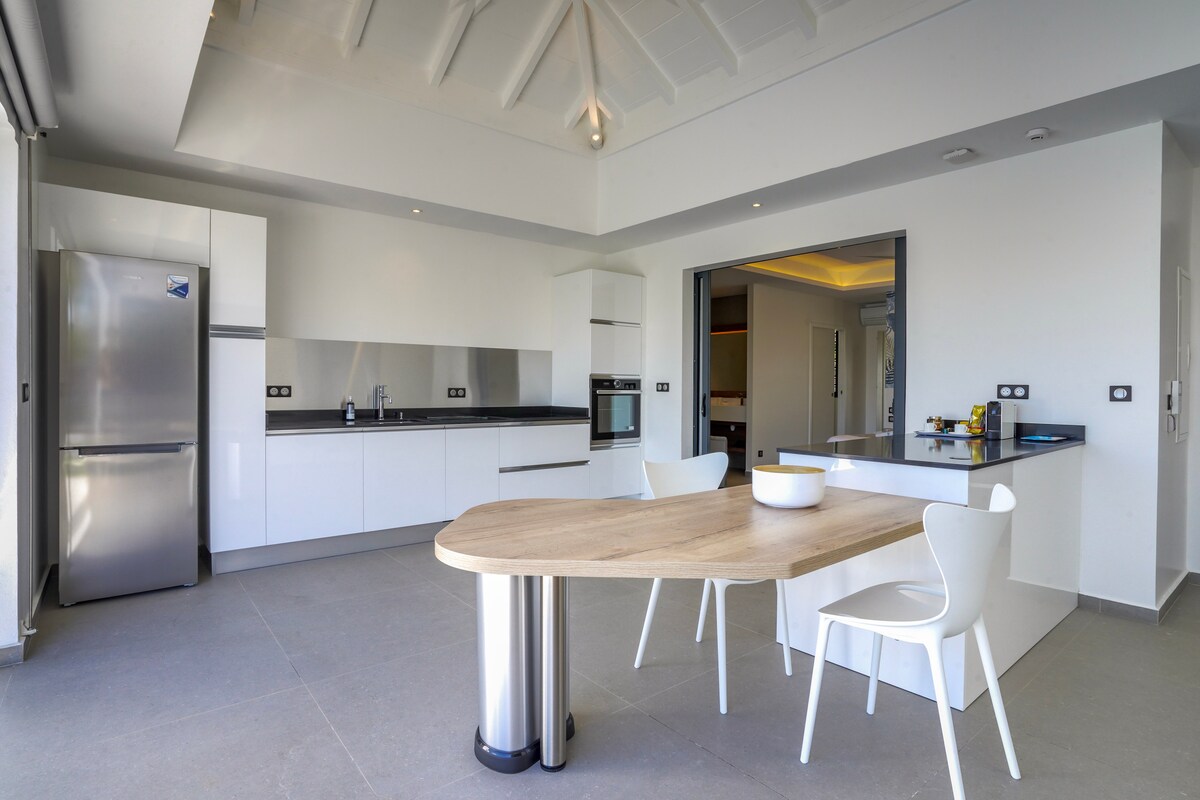 🌴 Bienvenue à La Marigalantine Situé dans le village Kawann, calme et sécurisé, le bungalow La Marigalantine bénéficie d'une proximité à la plage accessible à pied en poussant le portail du site. Moderne et décoré avec goût, il est idéal pour des vacances en couple et offre le confort et les équipements indispensables pour un séjour réussi ! Il dispose d’une terrasse bien exposée avec vue sur jardin tropical et permet de rejoindre la piscine du complexe en moins d'une minute.