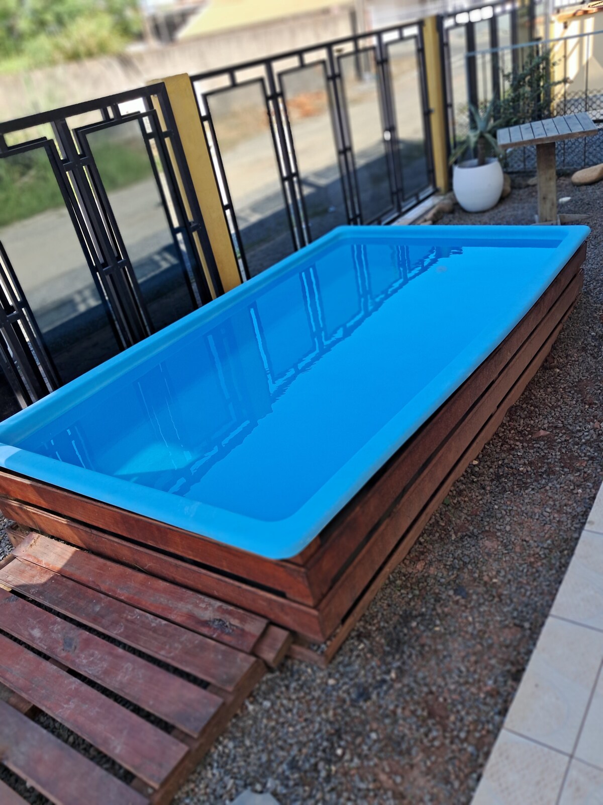 Relaxe com toda a família nesta casa tranquila, com piscina, ar condicionado, internet, TV por assinatura, tudo muito limpo e higienizado esperando por vocês!!Aconchegante! Perto da Praia, comércio, com ruas pavimentadas, um local seguro. Sua família e você merecem desfrutar desta oportunidade!