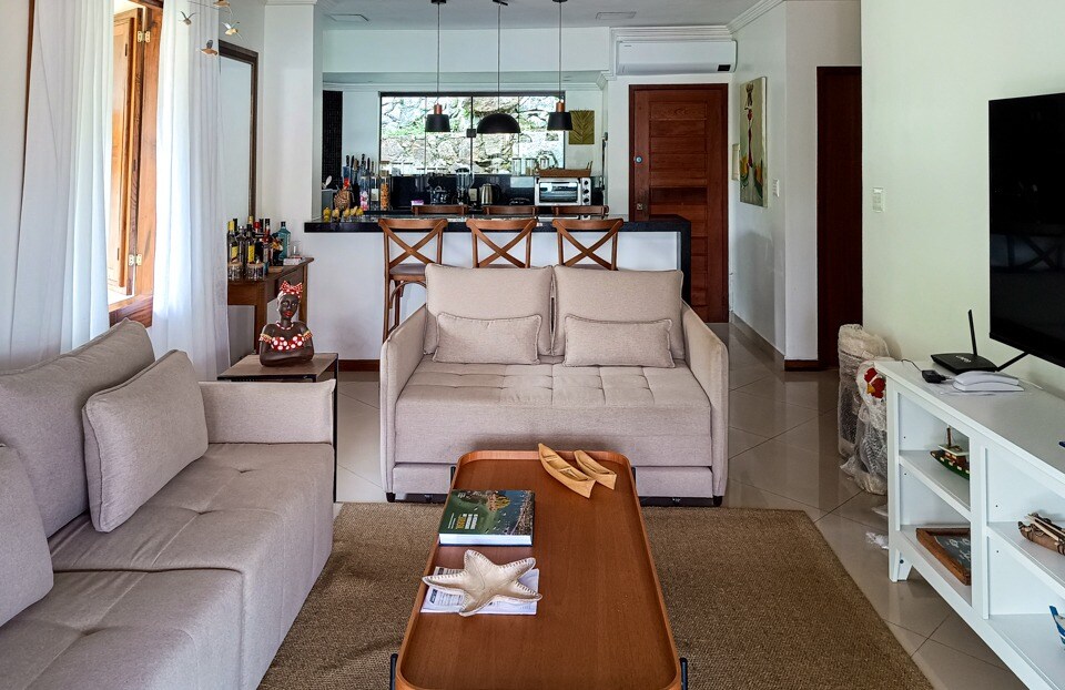 폰타 두 칸타도르 콘도미니엄의 집, 바다와 산 전망을 자랑하는 매우 조용하고 쾌적한 장소, 콘도미니엄 내부에서 해변에 접근 가능. 24시간 도어맨 전용 수영장 및 와이파이 천장이 높고 매우 매력적인 집! 매일 정원 및 수영장 청소를 위해 가정 도우미가 있습니다. 보트 대여 가능. 6명에 대한 가격으로 2명을 추가할 수 있습니다(추가 요금) * 사전 승인을 통해 반려동물을 허용합니다.