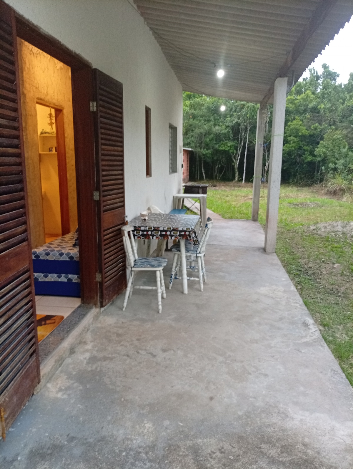 조용한 숙소에서 온 가족이 함께 휴식을 취하세요. 더블 침대, 이층 침대, 소파 베드가 있는 침실 1개로 6명을 수용할 수 있는 숙소 주방에는 모든 조리도구가 완비되어 있으며, 식기 30 조각, 트라몬티나 냄비 게임, 식기, 유리잔, 유리잔, 유리잔 가스레인지, 냉장고, 천장형 선풍기 의자 4개가 있는 테이블 바란다, 퀸타그란데 Com pé de cqueiro 가족 또는 친구들과 함께 즐길 수 있는 평온함