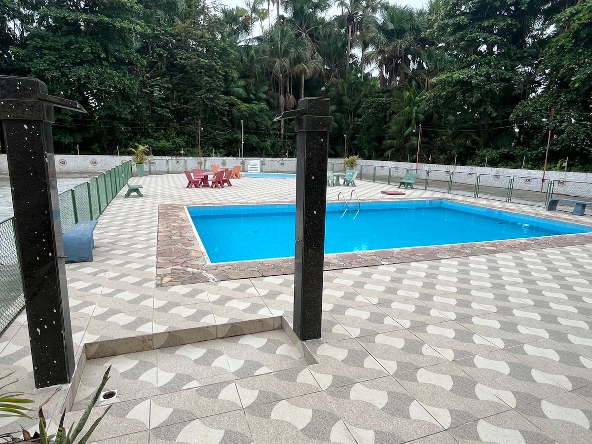 조용한 숙소에서 온 가족이 함께 휴식을 취하세요. 계절에 맞는 모기의 알루고 하우스. 6명. 침실 2개, 욕실 1개, 둘 다 중앙 공기. 더블 침대 1개와 싱글 침대 2개가 있으며, 각 방에는 해먹 1개를 설치해야 합니다. 차고 3대용 차고. 추라스케이라와 수영장. 보안 시스템, 경보기, 전기 울타리가 있는 숙소. 가정용 식기 (접시, 가전제품, 냄비) 가 구비되어 있습니다. 물통이 있는 물. 와이파이.