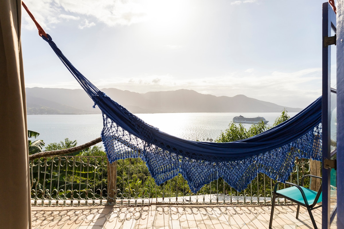 IImagine um cenário perfeito… Encontrou! A Suíte Ilha Mar é, sem dúvida, a sua melhor opção em Ilhabela. Ela possui uma ampla varanda com rede de casal, mesa e dois bancos — tudo pensado para proporcionar uma vista incrível para o mar e para o pôr do sol! A suíte dispõe de cama queen, guarda-roupa, ar-condicionado, ventilador de teto, frigobar, TV de 50”, varal de chão, uma chaleira, 2 xícaras e 2 copos, permitindo que o hóspede prepare um café depois de um belo dia neste paraíso.