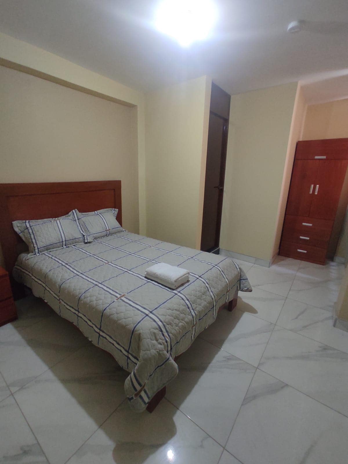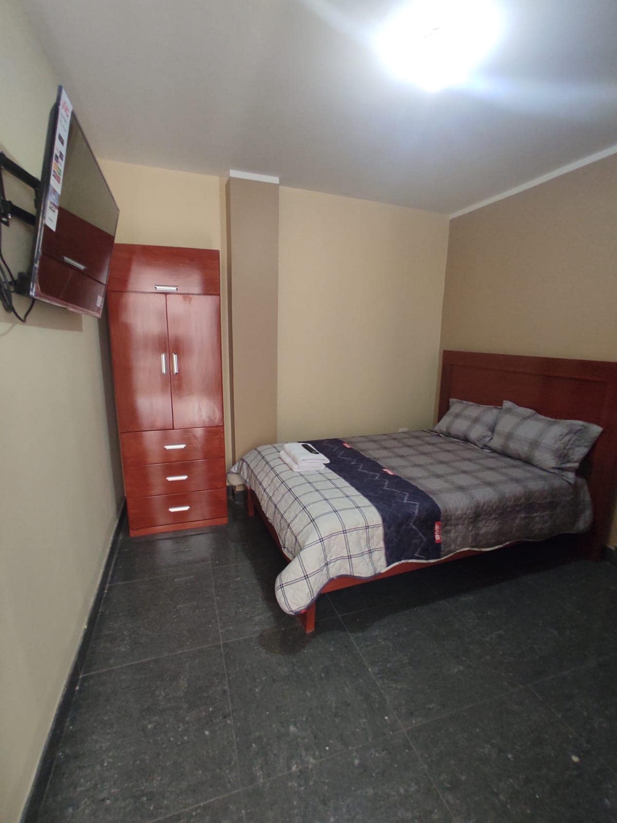 Depa privado en Lambayeque con WiFi. 1 dormitorio con baño privado, sala con TV, comedor y cocina equipada. Cómodo, iluminado y tranquilo. Ideal para parejas o viaje de trabajo.
