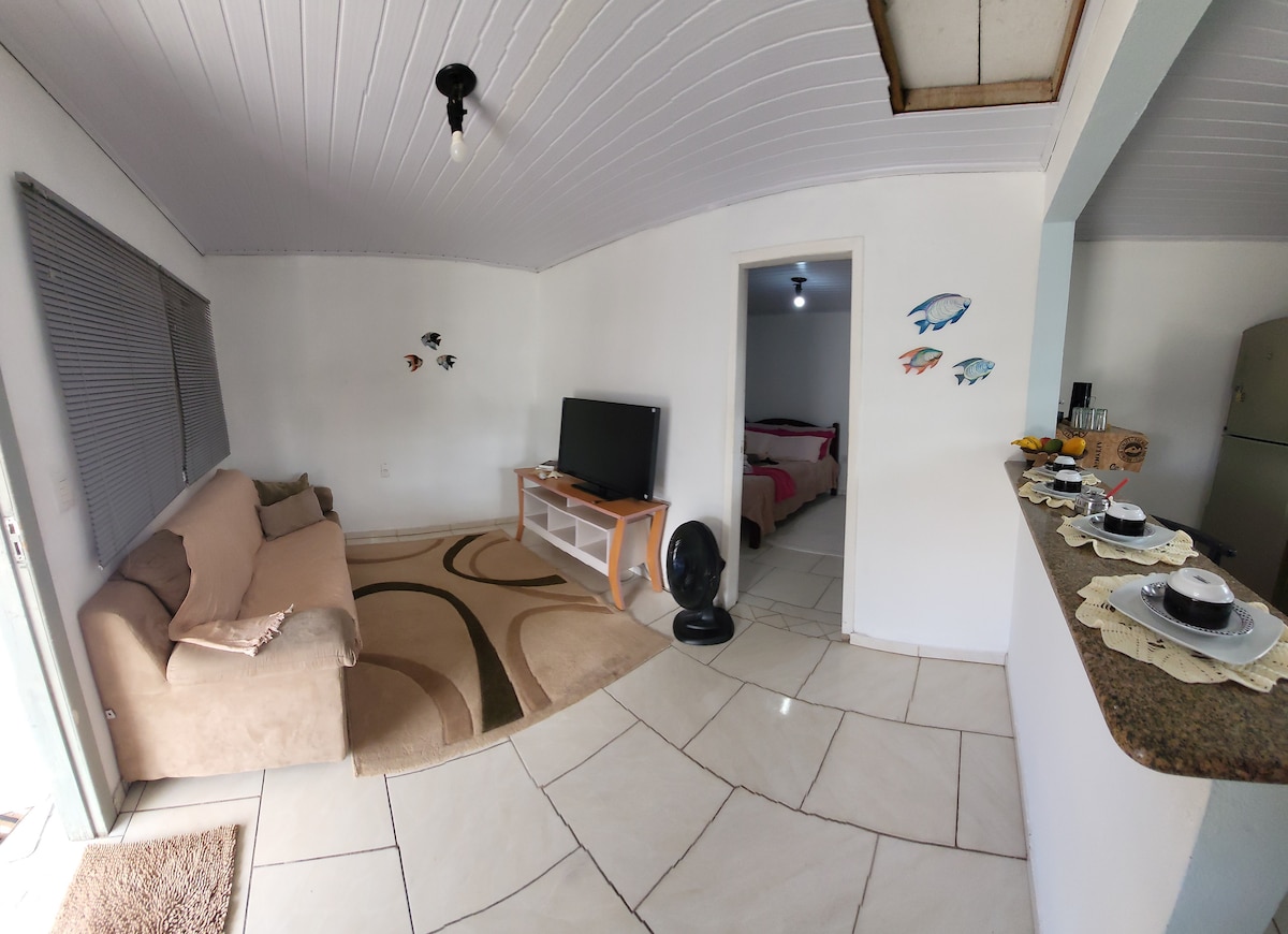 Nosso local lhe proporciona a oportunidade de descansar num ambiente sereno, imerso em exuberante natureza, comodamente instalado numa casa muito bela, aconchegante e com explêndida vista da lagoa. Todo o terreno, devidamente cercado, está reservado ao uso exclusivo dos hóspedes e de seus pets. A lagoa banha o quintal e tanto o acesso quanto o uso da praia é privativo. Nos municípios vizinhos - Imbituba, Garopaba, Laguna - são inúmeras as praias e demais atrativos a proporcionar ótimos passeios.
