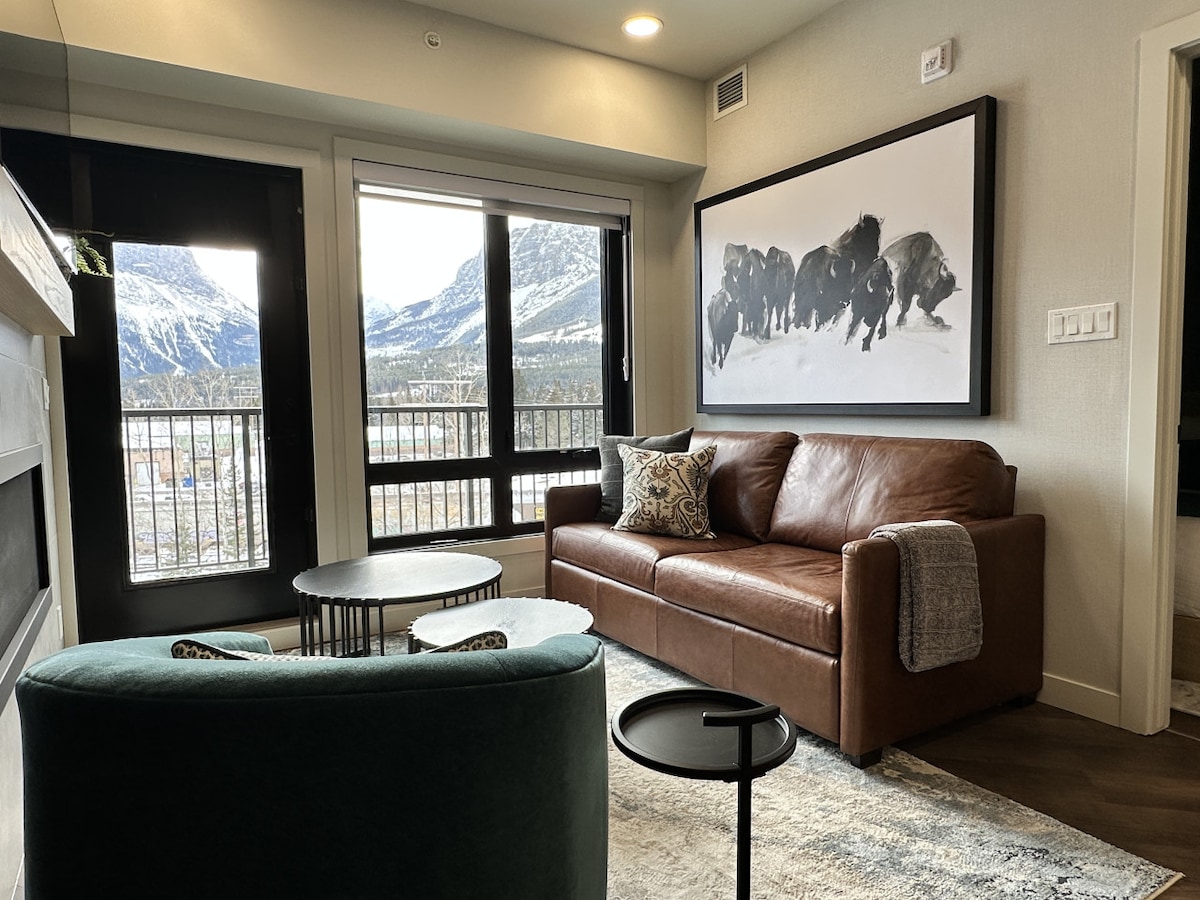 휴가를 보내러 오신 것을 환영합니다! 인테리어는 현대적이고 멋지며 매력적입니다. 개방형 컨셉의 거실에는 자연 채광이 들어오고 멋진 산 전망을 감상할 수 있는 커다란 창문이 있습니다. 침실에는 아치형 천장과 킹사이즈 침대가 있습니다. 난방 욕실 바닥, 이중 세면대, 레인 샤워기, 욕조를 즐겨보세요. 대형 전용 옥상 데크에서 로키산맥의 파노라마 전망을 감상할 수 있습니다! 밴프 타운 센터에서 도보 거리에 있으며 게스트 전용 출입구를 제공합니다.