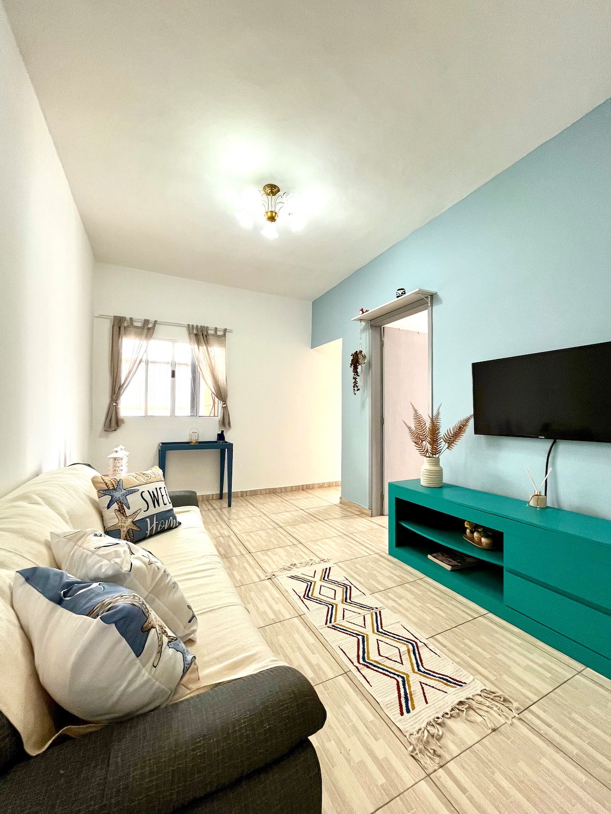 Apartamento com estrutura para seu home office! Apartamento aconchegante, moderno e com vista para o mar. Oferecemos espaço home office, com internet de alta velocidade permitindo que você possa trabalhar, e ao mesmo tempo usufruir do clima de praia. Estamos o último andar bem ventilado e iluminado. Apartamento todo equipado com infraestrutura necessária para seu bem estar "cozinha completa e 1 ambientes com ar condicionado, 2 sacadas vista mar/montanha. Nossa Voltagem de energia é 220V