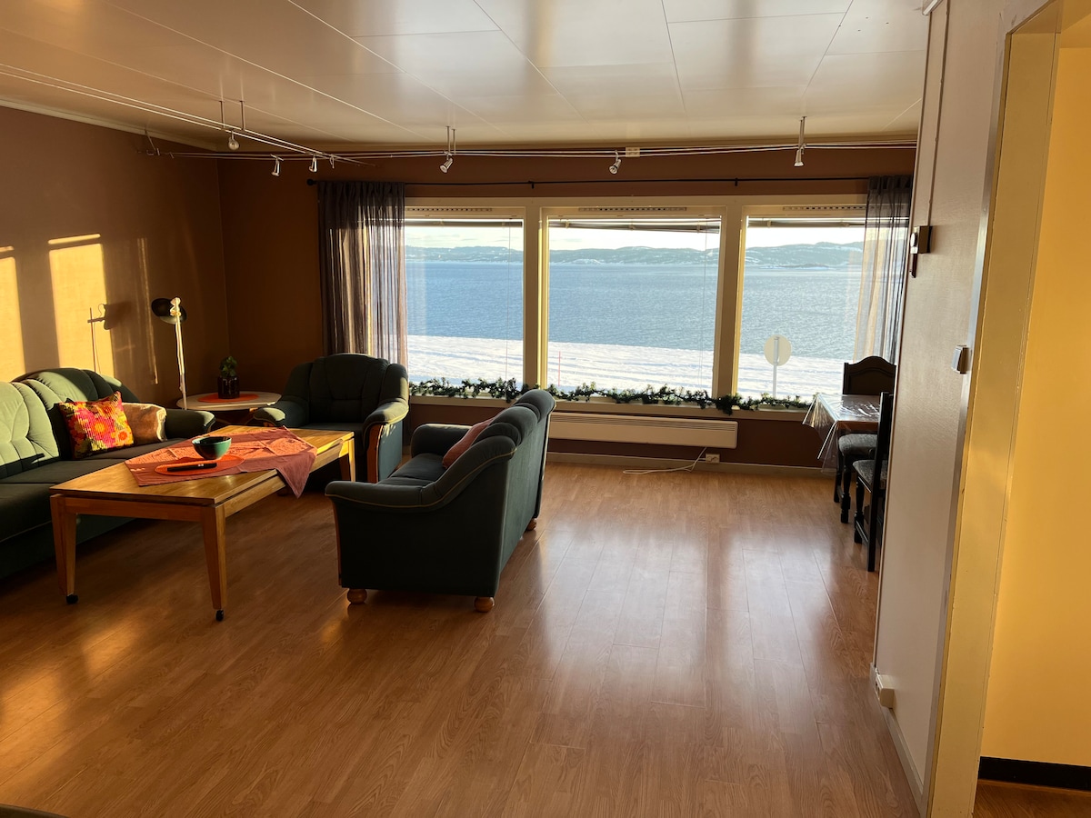 Denne leiligheten er romslig, moderne, lun og koselig. Nydelig utsikt mot sjøen og Trondheimsfjorden. Leiligheten ligger i et område som oppleves som stille og rolig. Her kan du nyte kaffekoppen og kjenne både på morgen og kveldssola på den store uteplassen og den koselige takterrassen! God beliggenhet med transportmuligheter i nærheten. Jeg har en ekstra gjesteseng (feltseng 90*200) som kan settes frem ved behov. Bare gi meg beskjed på forhånd så ordner jeg det.