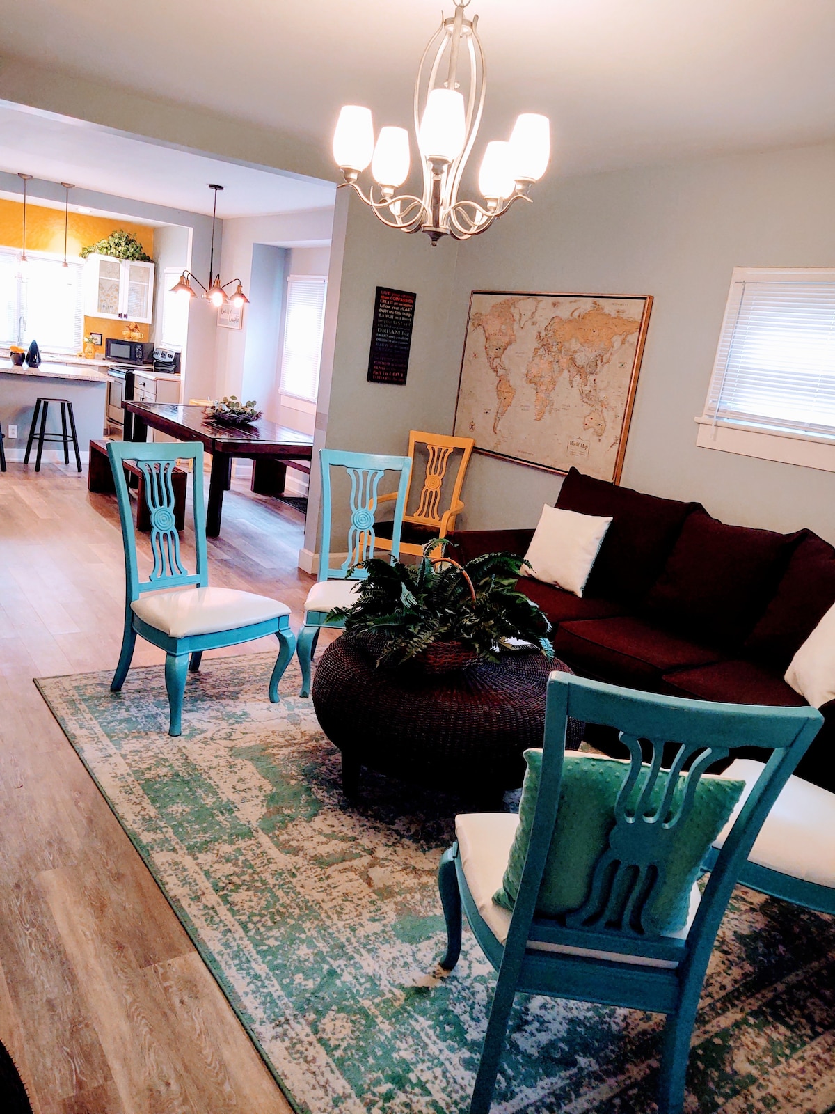 이 업데이트된 3베드룸 미드 센추리 숙소는 반려동물 동반 불가, 금연이며 13세 이상의 게스트에게 개방됩니다. 얼햄 칼리지에서 북쪽으로 3블록, 리드 병원-IU 이스트에서 3.7마일, 웨인 카운티 페어그라운드에서 2.5마일 떨어져 있습니다. 1958년에 지어졌으며 최대 5명까지 수용할 수 있습니다. 가스 벽난로, 깊은 욕조, 세탁 시설, 1층 인테리어가 있습니다. 길 건너편에는 대여 가능한 쉼터, 놀이터, 농구 코트가 있는 나무가 우거진 공원이 있습니다.