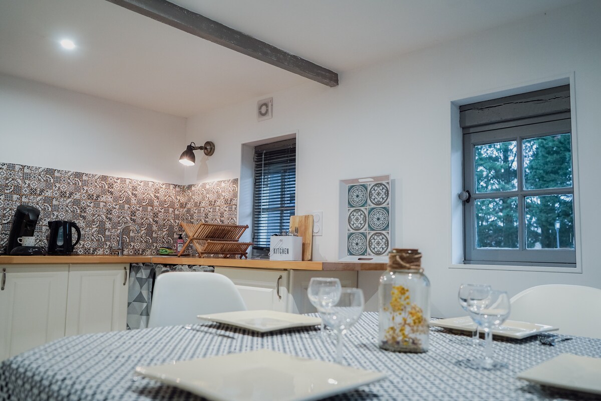크뤼즈에서 베린의 밀 (Mill of Verrines) 을 만나보세요! 녹음이 우거진 조용한 곳에 자리한 완전히 복원된 19세기 건물입니다. 4명에서 6명까지 시설이 완비된 전원주택이 여러분을 기다리고 있습니다. 5월 중순부터 수영장 운영, 광섬유 2x400MB, 리넨, 목욕 수건, 리넨, 리넨, 리넨이 제공됩니다. 일부 날짜는 예약이 차단되어 있지만, 원하시는 날짜와 일치하는 경우 알려주세요.