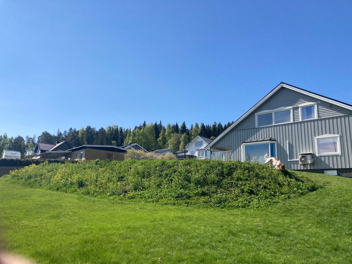 마스터 침실에는 고급스러운 킹사이즈 침대, 두 번째 침실에는 싱글 침대 2개가 있는 아늑한 아파트에서 편안한 숙박을 즐기세요. 거실은 풀사이즈 침대로 변신합니다. 오슬로에 비해 더 깨끗한 식수의 혜택을 누리세요. 조용한 동네에 위치하여 상점과 버스정류장까지 도보로 18분 거리입니다. 야생동물이 있는 경치 좋은 호수가 단 10분 거리에 있습니다. 아파트에는 시설이 완비된 주방, 현대적인 욕실, 세탁실, 무료 와이파이, 주차장이 있습니다.