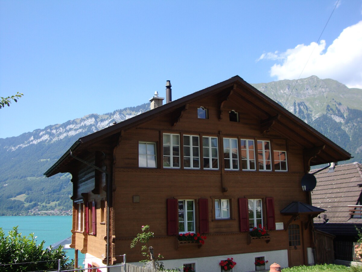 브리엔츠 호수의 환상적인 위치! 1층과 다락방에 각각 하나의 아파트가 있는 홀리데이 샬레 1층의 밝고 화창한 2 ½ 룸 아파트! 소파베드, 벽난로, 전면 호수 전망이 있는 넓은 거실이 있습니다. 오픈 키친, 완벽하게 가구가 배치되어 있습니다. 침대 2개, 침대 옆 테이블, 옷장, 충분한 카운터 공간이 있는 침실. 작은 목욕탕과 샤워 시설, 세면대, 화장실이 있는 밝은 욕실. 좌석, 바베큐장, 잔디밭이 있는 넓은 호수 정원. 목욕과 휴식에 이상적입니다.