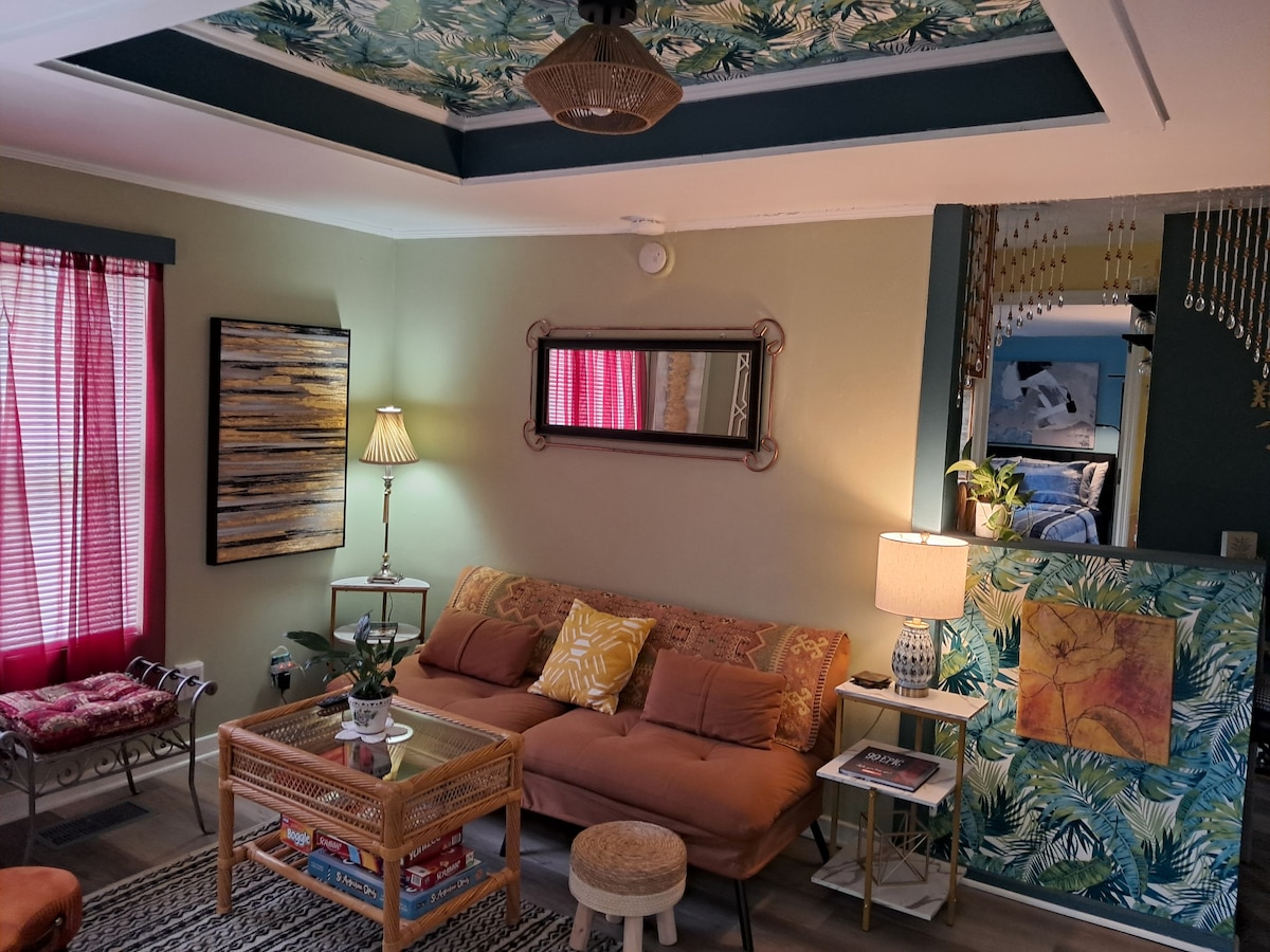 "더 오아시스" 는 메인 하우스와 완전히 분리된 아늑한 뒷마당 게스트 룸으로, I-95에서 1블록 떨어진 잭슨빌 중심부에 위치한 오래되었지만 안전한 동네에 위치한 아름다운 야외 오아시스에 자리 잡고 있으며, 모든 것에 쉽게 접근할 수 있습니다. 시내, 컨벤션 센터, 베테랑 기념 아레나, TIAA 뱅크 필드 (재규어 스타디움), 타임스 유니언 센터, 메이요 클리닉 (15마일), 해변 (18마일), 공항 (18마일) 에서 5 ~ 7분 (4 ~ 5마일) 거리에 있습니다. 참고: 동물/반려동물/만 12세 미만의 어린이는 동반 불가합니다.