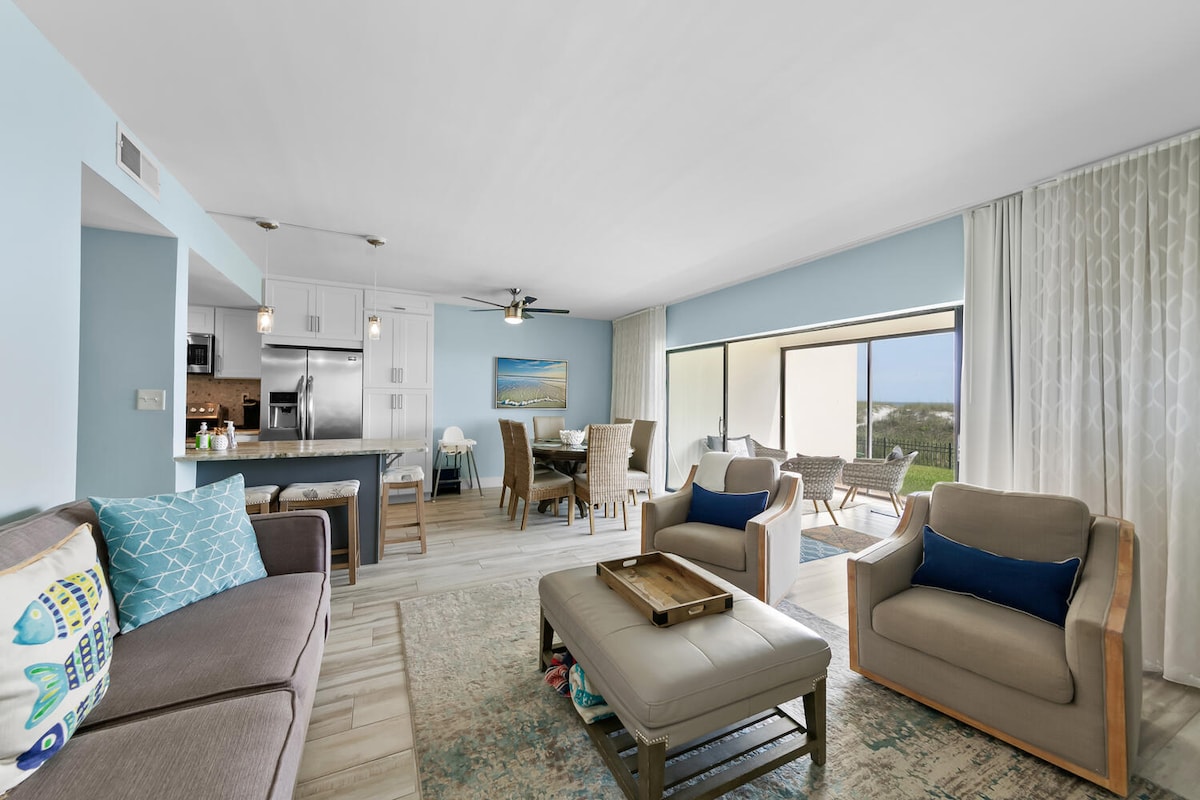 If you want a picture perfect panoramic view of a sunrise to remind you of life's richness or an intimate moon-lit walk to reflect on life, then THIS is the location for you. Here you can just be. Let the Ocean waves heal your soul and recharge your spirit from the top floor unit with direct, private beach access. Central location! Fishing pier is a few minutes walk, Neptune beach is 9 min drive, Town Center is 17 minutes, Jaguars stadium is 25 minutes. The ocean is 32 stairs away.