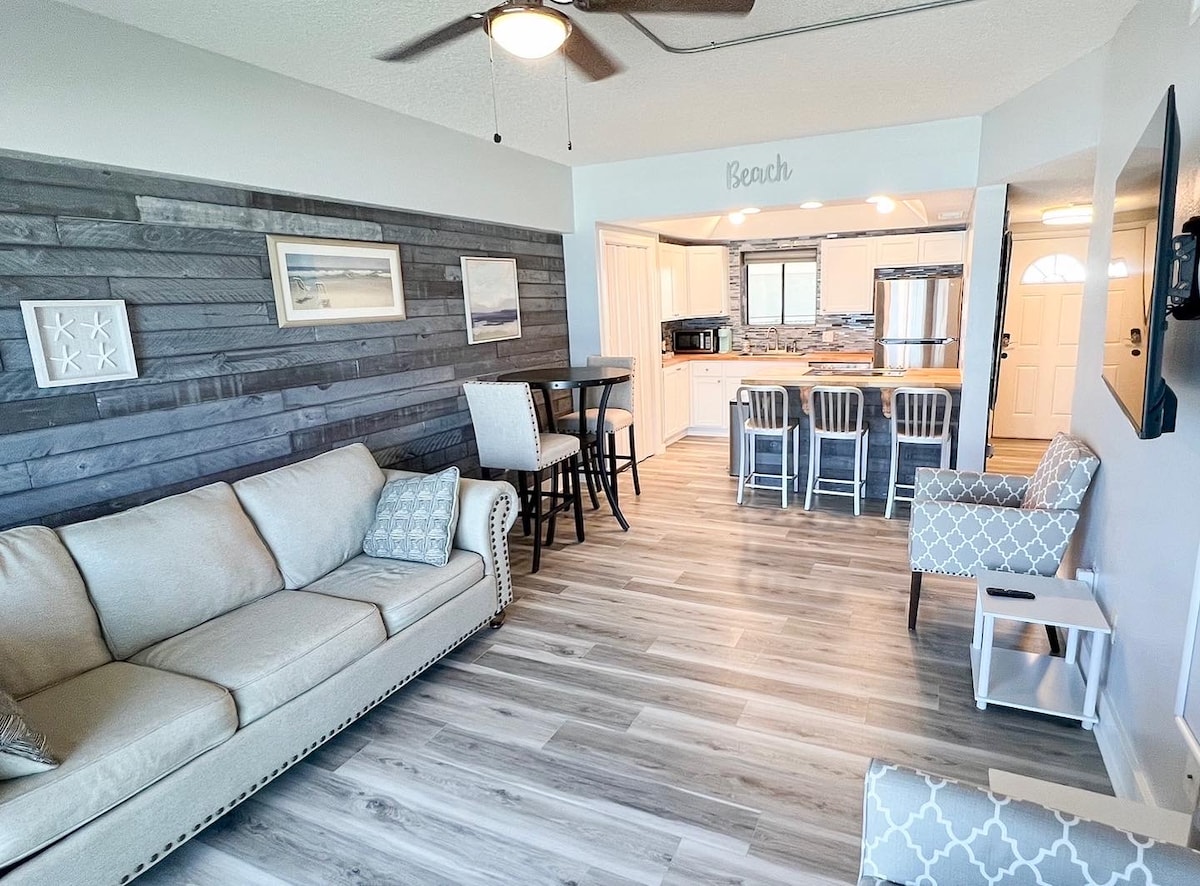 OCEANFRONT with a million dollar view! The unit has 2 Beds/1 Bath, set up as a large studio (850 sqft). Wifi with a 65” Smart TV, workspace with a fabulous view. The separate bedroom has a comfortable queen bed and TV. Enclosed sunroom with an incredible view of the beach. The kitchen is stocked with cooking essentials. Beach towels, chairs, and beach umbrella are also included. Washer/Dryer in the unit. Convenient 5 to 10 min drive to Mayo Clinic.