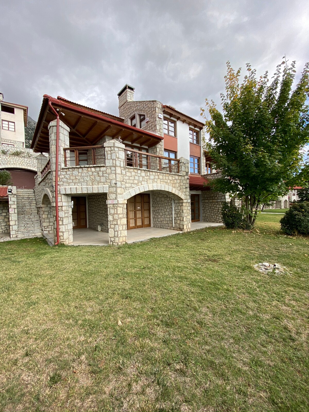 지리아 (Ziria) 의 1,100m 지점에는 그림 같은 페네오스 (Feneos) 의 수도 고우라 (Goura) 가 있습니다. 저희 샬레-아르콘티코는 숲속에 위치해 있으며 마을 꼭대기를 장악하고 있습니다. 고원과 주변 산의 놀라운 전망을 감상할 수 있는 파노라마 발코니는 풍경과 숲과 함께 시시각각 변하며 시간이 멈춥니다. 모두가 원하는 것을 찾습니다. 가족 휴가와 커플 여행에 이상적이지만 모험, 액티비티, 여행을 위한 베이스로 적극 추천합니다.