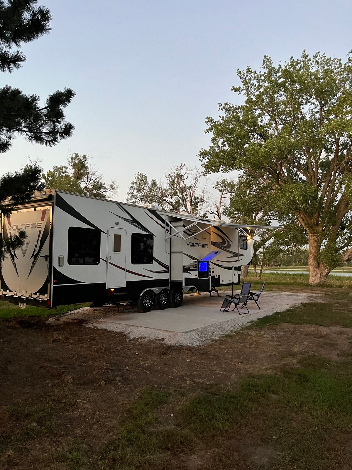 이 독특한 장소에서 자연의 소리를 즐기세요. 블루 레이크의 영구 주차장에 완비된 캠핑카가 있습니다. 게스트는 야외 바/그릴/카바나 공간을 즐길 수 있습니다. 음료, 텔레비전, 가스 그릴 및 가스 화덕용 냉장고 포함. 게스트는 퍼팅 그린과 그네 세트도 이용할 수 있습니다.