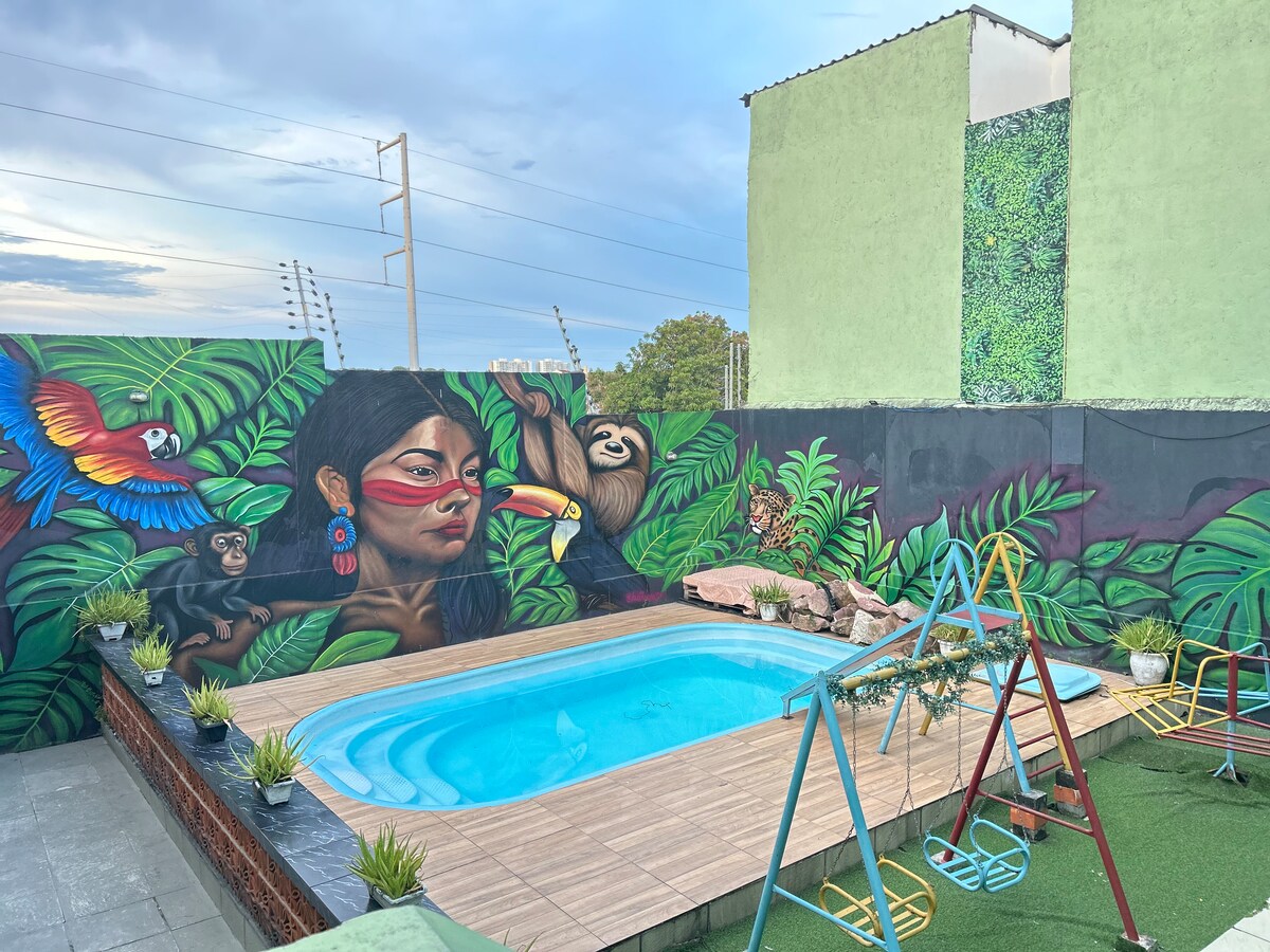 저희 숙소는 평화롭고 즐거운 숙박을 제공하도록 설계되었습니다. 숙소는 아늑하고 시설이 완비되어 있으며, 가족이나 친구와 함께 집처럼 편안하게 지내는 데 필요한 모든 것을 갖추고 갖춰져 있습니다! 위치는 최고의 특징 중 하나입니다. 우리는 상조르즈 동네에 있으며, 약국, 스낵 바, 시장 및 세탁소와 가깝습니다. 아마조나스 쇼핑, 마나우아라, 아레나 다 아마조니아, 다운타운, 폰타 네그라에서 몇 분 거리에 있습니다. 무엇보다 반려동물을 환영합니다! 참고: 이 숙소에는 차고가 없습니다.