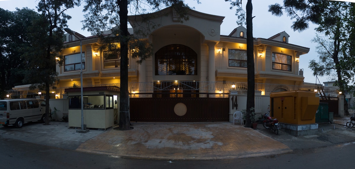 센타우루스 이슬라마바드에서 불과 1분 거리에 이슬라마바드 한가운데에 위치한 우아하고 현대적인 장식, 아늑한 분위기. 가족의 분위기, 게스트의 완벽한 프라이버시가 지켜집니다. LED TV, 무료 와이파이, 위성 채널, 에어컨/중앙 난방 객실. 구내 24시간 보안 요원. 전기 불법 행위 백업은 마약과 매춘이 허용되지 않습니다!
