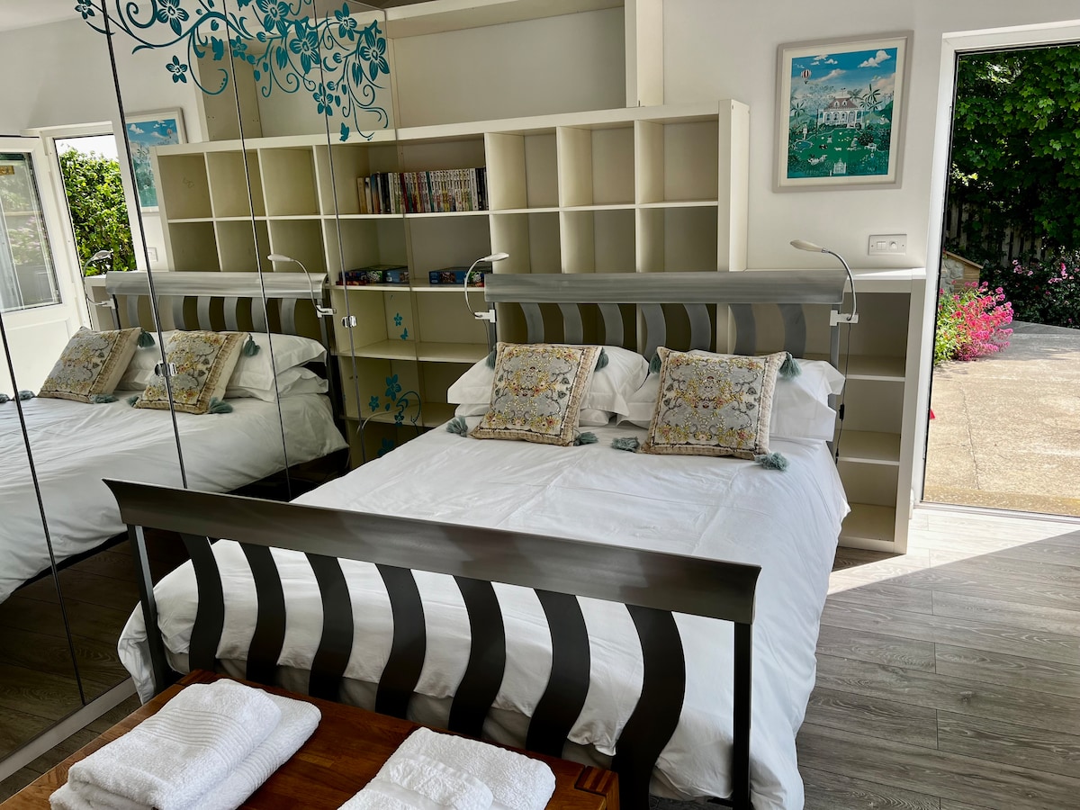 Interior designed self-contained studio with bedroom, kitchenette, bathroom and private garden. Please note there is no parking at the property. Lymington Town train station is a four minute walk. There are several nearby car parks and overnight street parking. Lymington has a thriving Saturday market and high street. The quay, marinas and IOW ferry terminal are all a short walk away and the new forest is very close. Please note the host has a dog who may sometimes be in the shared garden.