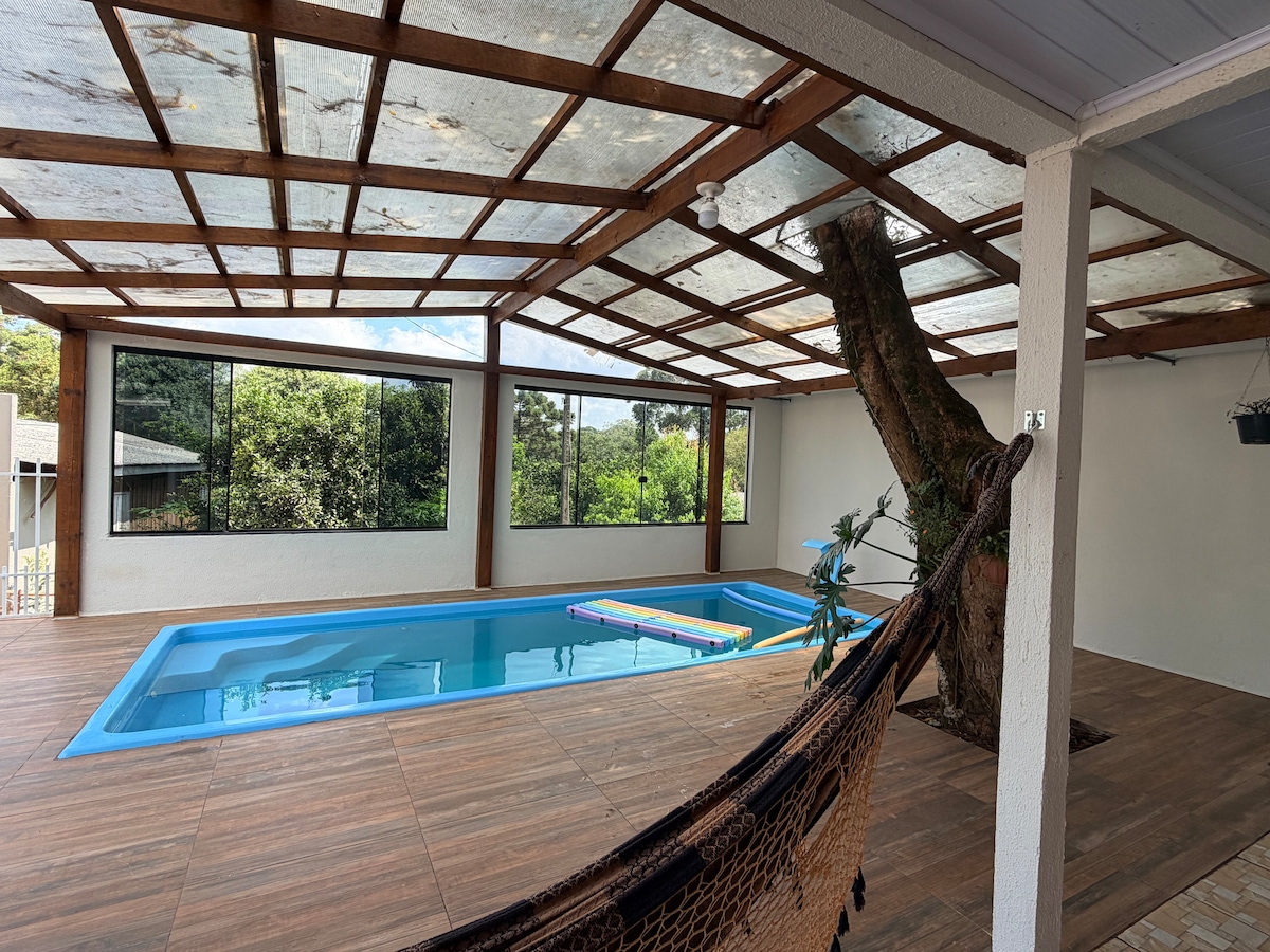 이 넓고 독특한 장소에서 그룹은 편안하게 지낼 것입니다. 모든 편의시설을 갖춘 매우 멋진 환경에서 자연을 볼 수 있는 멋진 전망. 2개의 방을 위한 벽난로. 식사 공간과 거실 및 벽난로가 있는 TV, 장작 난로, 조리대가 있는 고급스러운 환경, 인덕션 스토브, 냉장고, 냉동고, 맥주 제조기, 탑이 있는 생맥주 맥주기, 바비큐 그릴이 있는 넓은 생활 공간. 스위트 룸 3개 + 침실 1개. 데크와 수영장 + 스파/수중 마사지의 멋진 전망을 갖추고 있습니다.
