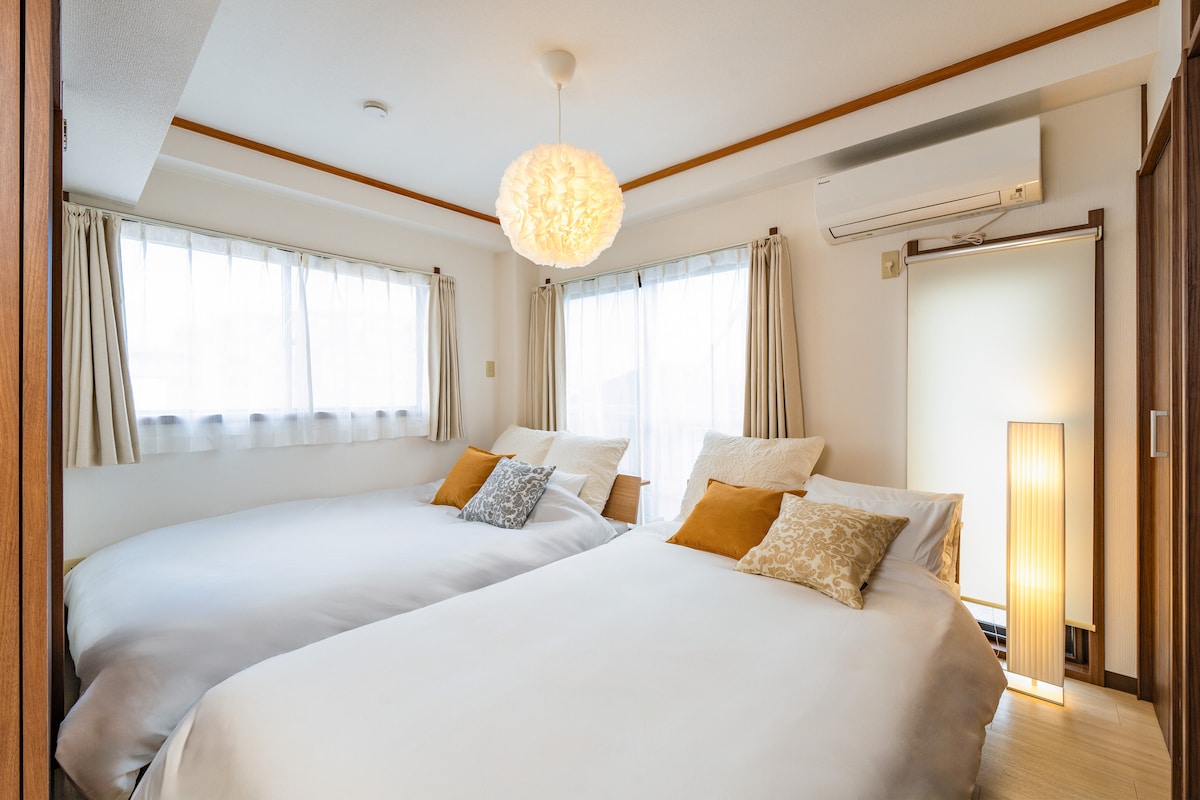 60㎡ 전체 임대 아파트/가장 가까운 역까지 도보 4분/이크비크 2개 역/신주쿠 5개 역/10명 숙박 가능(침실 3개)