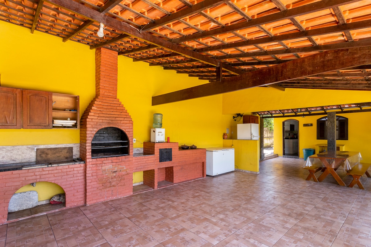 리우데자네이루에서 불과 1.5시간 거리에 있는 넓고 완벽한 목장으로, 단체 및 가족 여행에 이상적입니다! 에어컨이 설치된 객실 7개, 스위트룸 6개, 완비된 주방, 스카이 TV가 있는 대형 거실, 모든 객실에 발코니, 수영장, 나무 화덕이 있는 바베큐, 축구장, 배구 네트, 공식 당구대가 있는 게임룸, 당구대, 카드 게임 등이 있습니다. 300MB 광섬유 와이파이, 야외 공간, 주차장, 반려동물 친화적인 환경. 자연 한가운데에서 즐기는 여가와 편안함!