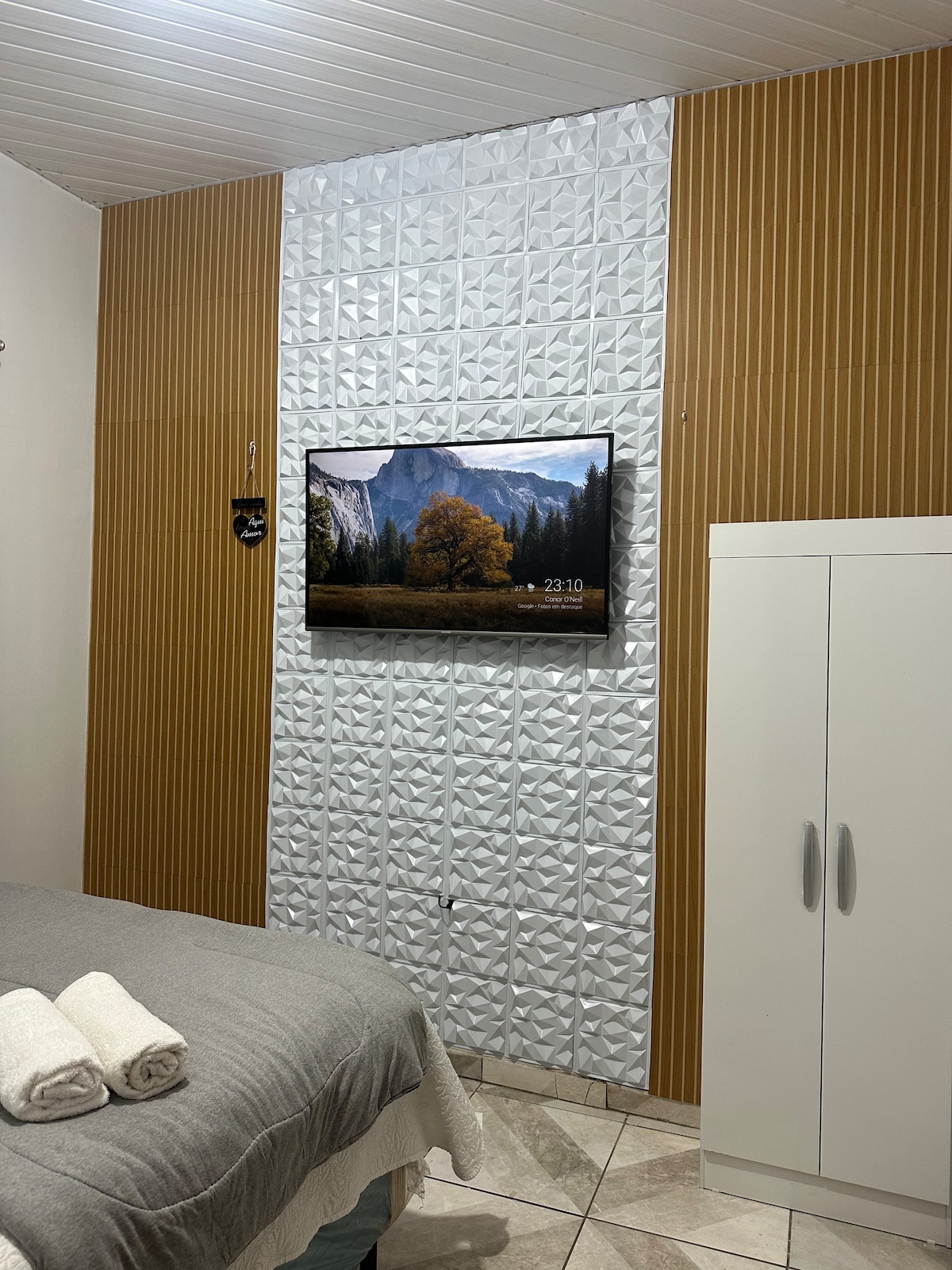 Sua família vai estar perto de tudo ao ficar neste lugar bem-localizado. Ambiente novo e inaugurado atualmente, garantimos conforto e qualidade. Conta com 2 camas de casal, 1 sofá cama, 1 central de ar; 1 ventilador, TV Smart, Wi-Fi, armário, cozinha equipada (geladeira, cafeteira, sanduicheira e utensílios)e pequena lavanderia. Localização estratégica: supermercado (3 min), academia (6 min), farmácia (5 min) e o famoso @cantinhodatiamaria (1 min), Café Mania (1mim). Apenas 10 min do aeroporto.