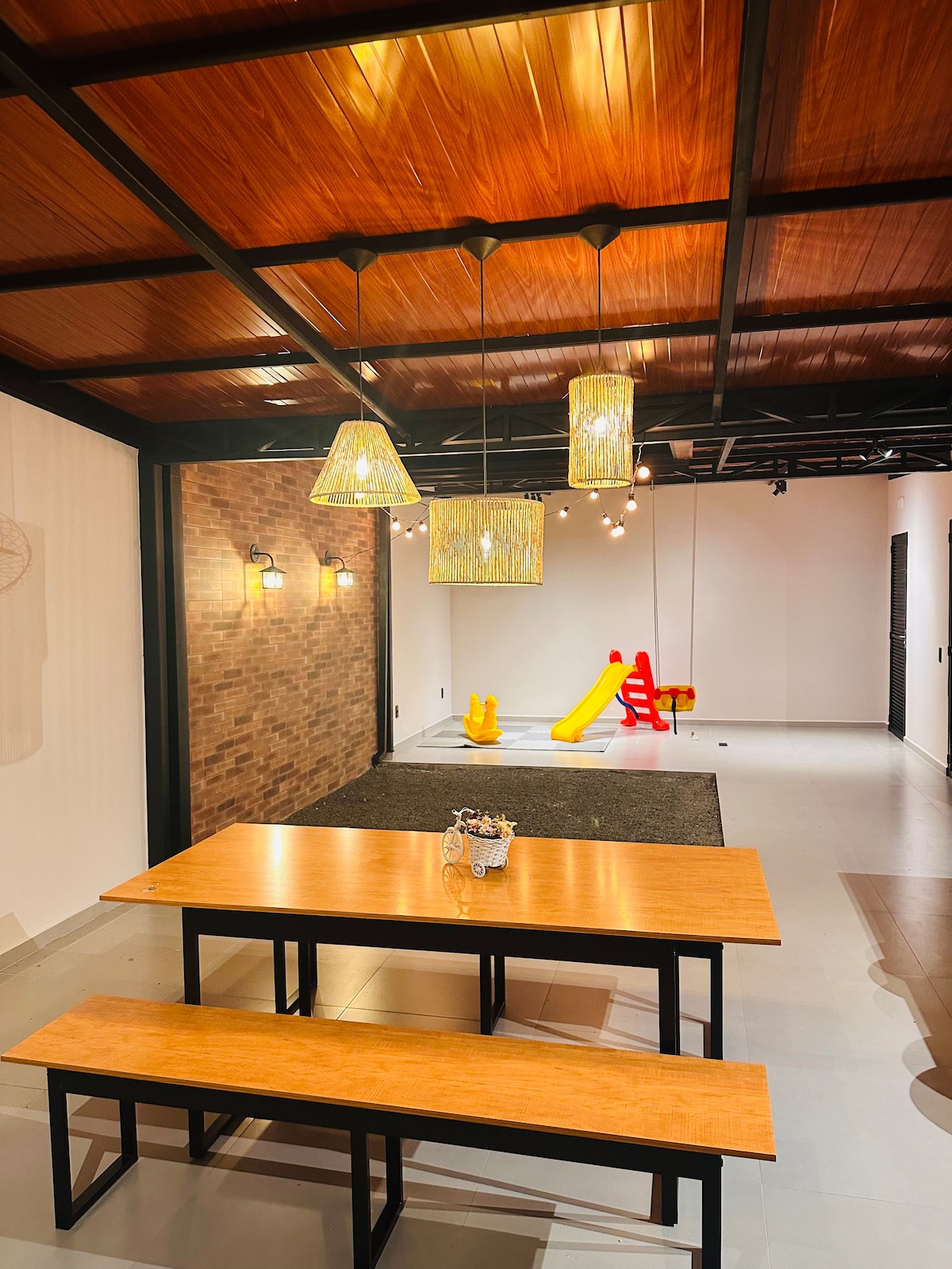 가족 모두와 함께 휴식과 레이저를 즐길 수 있는 넓은 공간을 갖춘 이 훌륭한 장소로 가십시오. 4 개의 스위트 룸과 1 개의 외부 욕실, 에어컨이 설치된 4 개의 스위트 룸, 거실, 식당, 바비큐 시설, 싱크대, 수영장, 냉장고, 전자레인지, 전기 오븐, 믹서기, 샌드위치 메이커 및 필요한 조리 도구를 포함한 완비된 주방. 2대의 차량을 위한 실내 차고와 3대의 차량을 위한 야외 주차 공간. 참고: 수영장에는 히터가 없습니다.