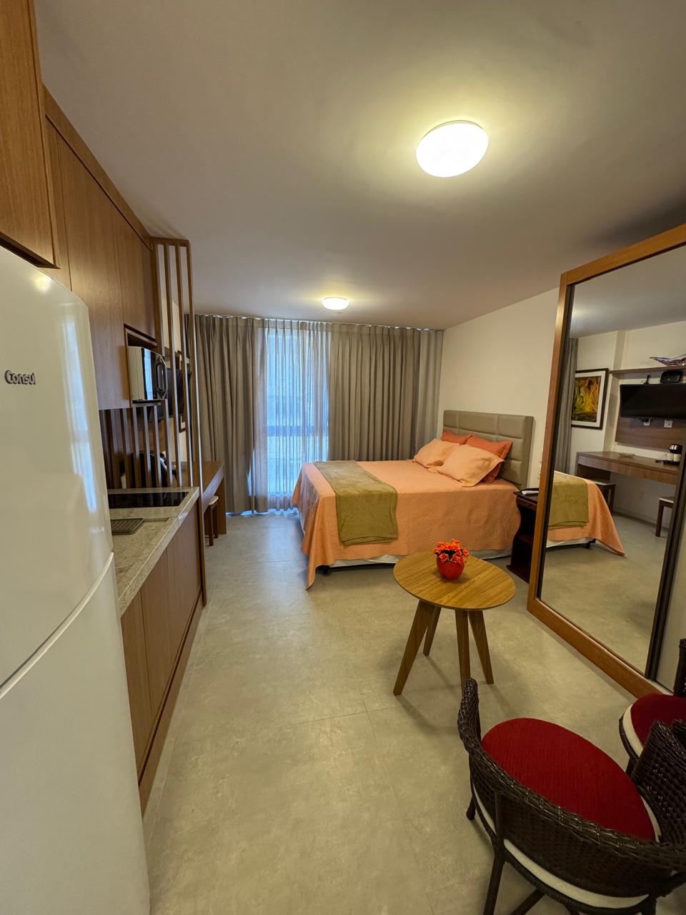 Anfitrião Superhost! Studio boutique no edifício Alive, no bairro Vitória — endereço mais nobre de Salvador. Desfrute piscina com borda infinita e vista incrível para a Baía de Todos os Santos. Moderno e finamente decorado, cama queen confortável, ar-condicionado, Wi-Fi 600 Mbps perfeito para trabalhar ou streaming e estacionamento grátis. A apenas 1,7 km da praia do Porto da Barra, perto de cafés, restaurantes e supermercado a 60m. Conforto, elegância e localização privilegiada em um só lugar.