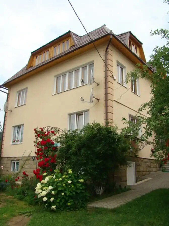 ми розташована в 15хв. від центру міста. номера в дереві з мебелью ручної роботи, з вікон садиби відкривається краєвид на гори. До ваших послуг окремий третій поверх в будинку на якому розміщено- 2двомісні та 1тримісний номери, кухня з усіма зручностями,столова кімната та санвузол. На території є мангал, альтанка, дитячий майданчик, стоянка-безкоштовні, руська баня за додаткову плату. біля садиби є продуктовий магазин, басеїн. допомога в організації всього - стосовно вашого