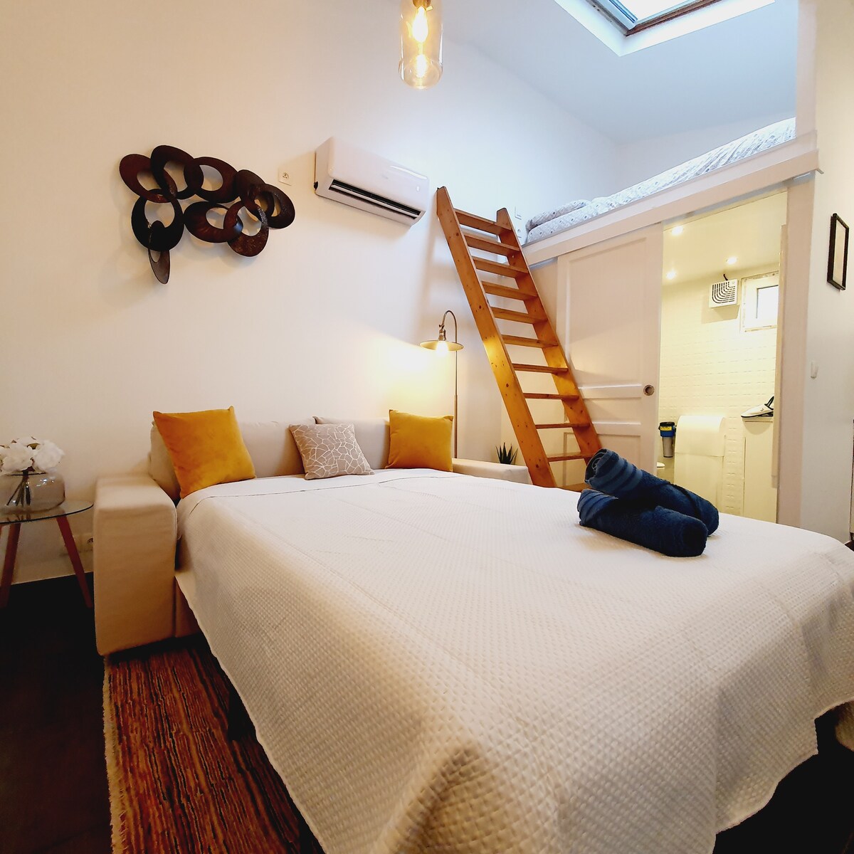 In the Paris’ trendiest neighborhood, elegant and cosy apartment with artistic vibe, close to the world famous Place des Vosges. 560sqf, under the roofs, charming, quiet and cosy, clean and decorated with taste, the flat has a small terrace with trees and plants. The area couldn’t be safer. Easy connection to everything and 2min from Picasso Museum, 5 from the waterside, 3 from Opera & many other interresting, hip, fashionable and iconic places. The amazing Paris at your doorstep! Bienvenue!