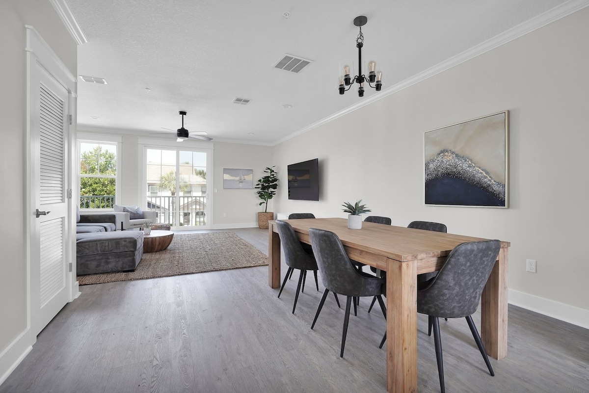 차분하면서도 스타일이 살아 있는 숙소에서 편안한 휴식을 즐기세요. 잭스 비치에 위치한 새롭게 단장한 타운하우스로 침실 2개와 욕실 1.5개를 갖추고 있으며 바다까지 도보로 단 1분(약 130야드/2블록) 거리에 있습니다. 여러 레스토랑과 상점이 있는 훌륭한 위치. 도보 5분 거리에 홀푸드, 본피시그릴, 치폴레, 마샬스, 파네라, 볼드빈커피, 여러 부티크, 주스바, 네일 스파 2곳이 있습니다. JTB 대로(202)까지 쉽게 접근할 수 있으며, 메이오 클리닉 및 TPC 사우그라스까지 차로 10분 미만 거리입니다.