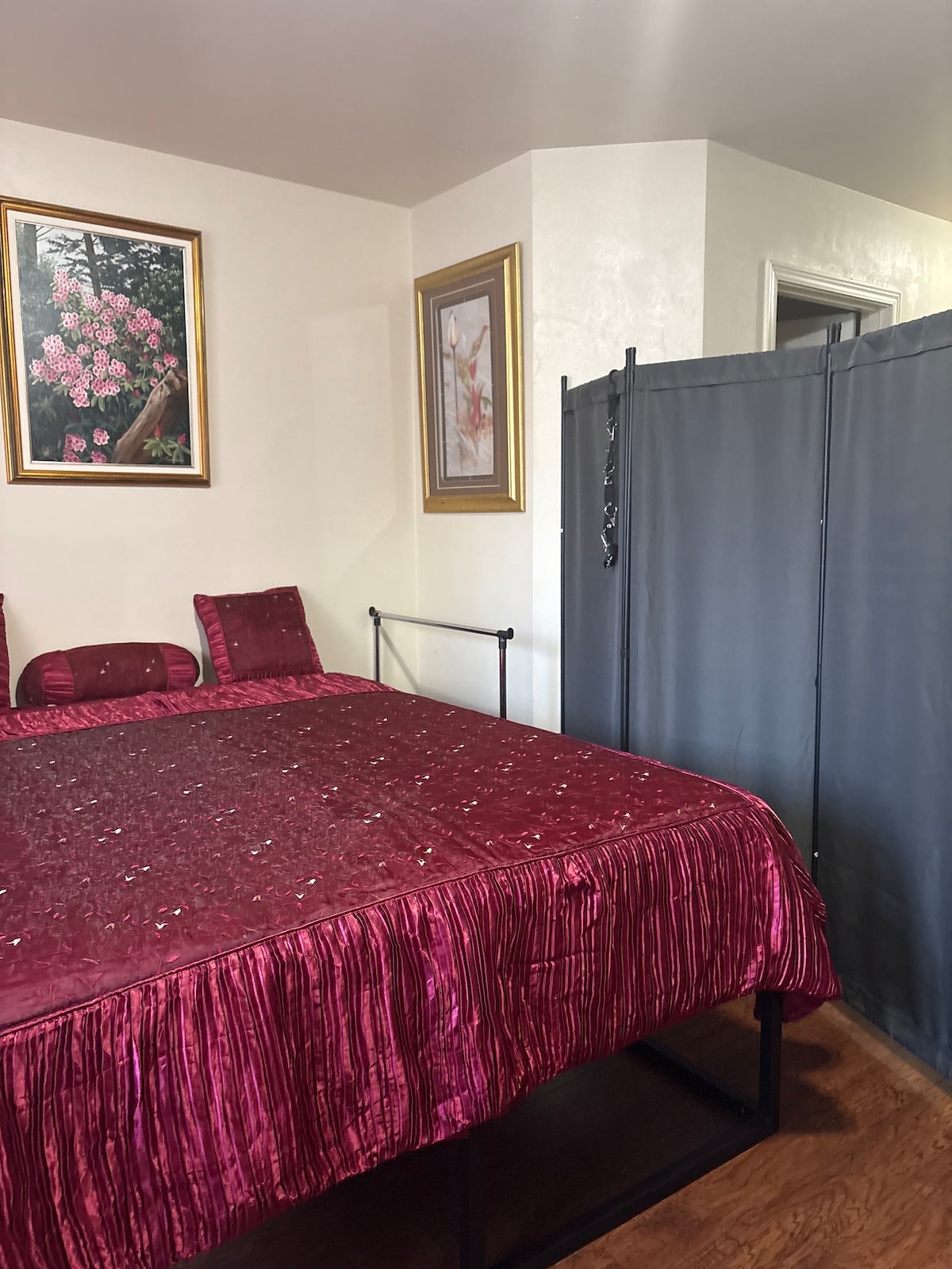 Retreat here on my 6 acres of madrone forest with pastoral views, 2 meditation labyrinths- yet only 3 miles to the quaint, historic town of Jacksonville, Oregon, home of Britt Festival, 35 minutes to Ashland and 1.5 hours to Mt. Shasta or Crater Lake. This guest suite in the lower level of my house. Walk the spiral labyrinths. Book a Sacred Sound bath session with Tibetan and crystal bowls & Paiste gongs for $70 during your stay. Massage chair available too. Simply divine!