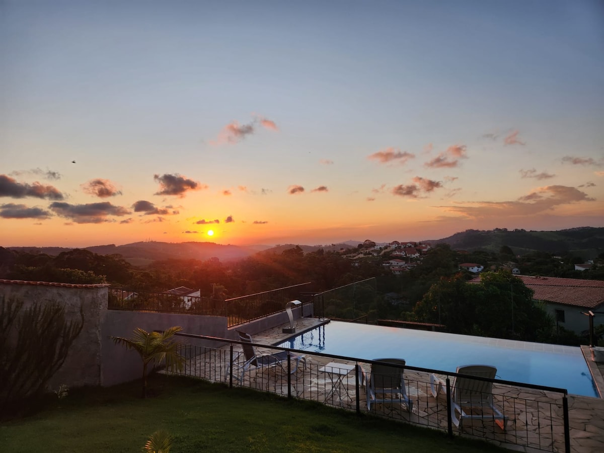 브라간사 파울리스타와 투이우티 사이에 있는 아름다운 산 꼭대기에 위치한 멋진 샬레. 근처에 시장과 레스토랑이 배달이 가능합니다. 낚시를 즐길 수 있는 호수. 유기농 과수원과 채소밭, 염소 없는 에어컨이 설치된 수영장, 반려동물, 축구장, 바비큐, 벽난로. 훌륭한 와이파이를 갖춘 전용 홈 오피스 룸. 반려동물은 매우 환영합니다. 침구와 목욕용 리넨이 제공됩니다. 시끄러운 소음은 허용됩니다. 숙소에는 시즌에 임대된 집도 하나 더 있습니다.