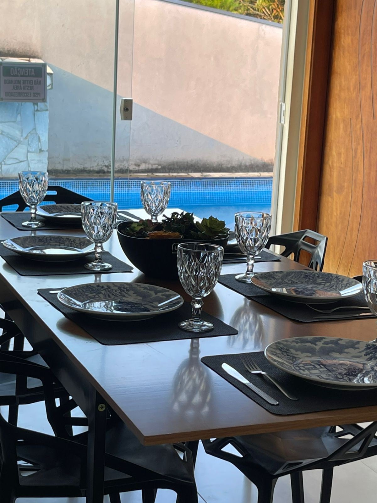 É uma chácara de 7.000 m² integrada a natureza com vista para uma das cachoeiras do rio Jaguari, perfeito para o descanso nos fins de semana e feriados. Casa em conceito aberto, espaço gourmet, duas piscinas uma com bar e campo de futebol. Acomodação para 12 pessoas, sendo 10 pessoas nos 3 quartos e 2 pessoas no sofá-cama na sala. São 3 banheiros um dentro da casa e 2 fora da casa. É fornecido aos hóspedes para uso panelas, tigelas, pratos, copos de água, canecas , talheres, etc.