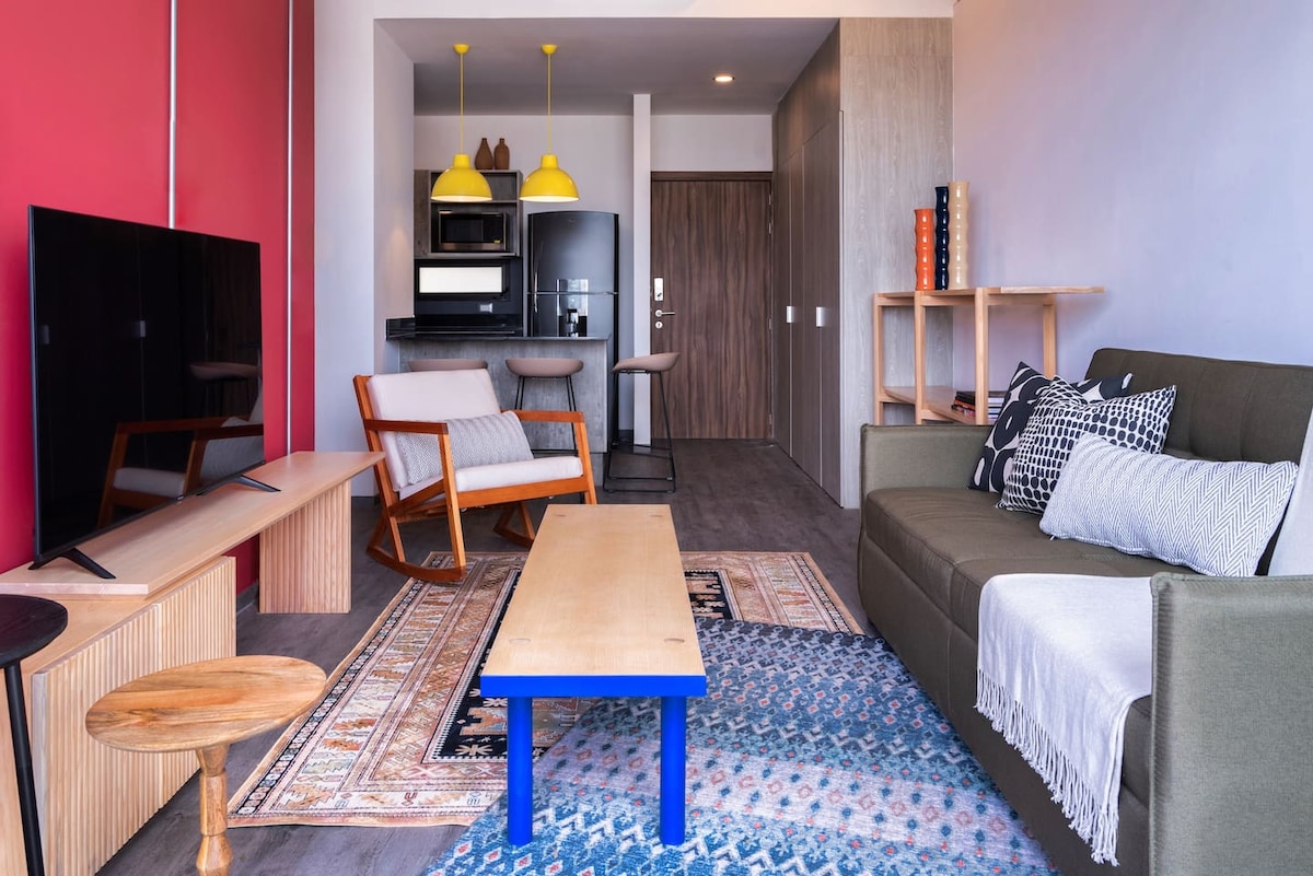 도심에 위치한 숙소에 머물러보세요! 이 아름다운 시내 아파트는 아름다운 전망과 중앙 공원이 있는 도심에서 거의 최고의 위치를 자랑합니다. 한 곳에서 편안함, 연결성, 스타일을 모두 즐길 수 있습니다!! ¡Pet friendly! with ludoteca y un acervo cultural. 24시간 보안, 지붕이 있는 주차장, 엘리베이터를 이용하실 수 있습니다. 로비 게이트에는 가장 상징적인 곳으로 이동할 수 있는 전철역과 저의 자전거 정류장이 있습니다.