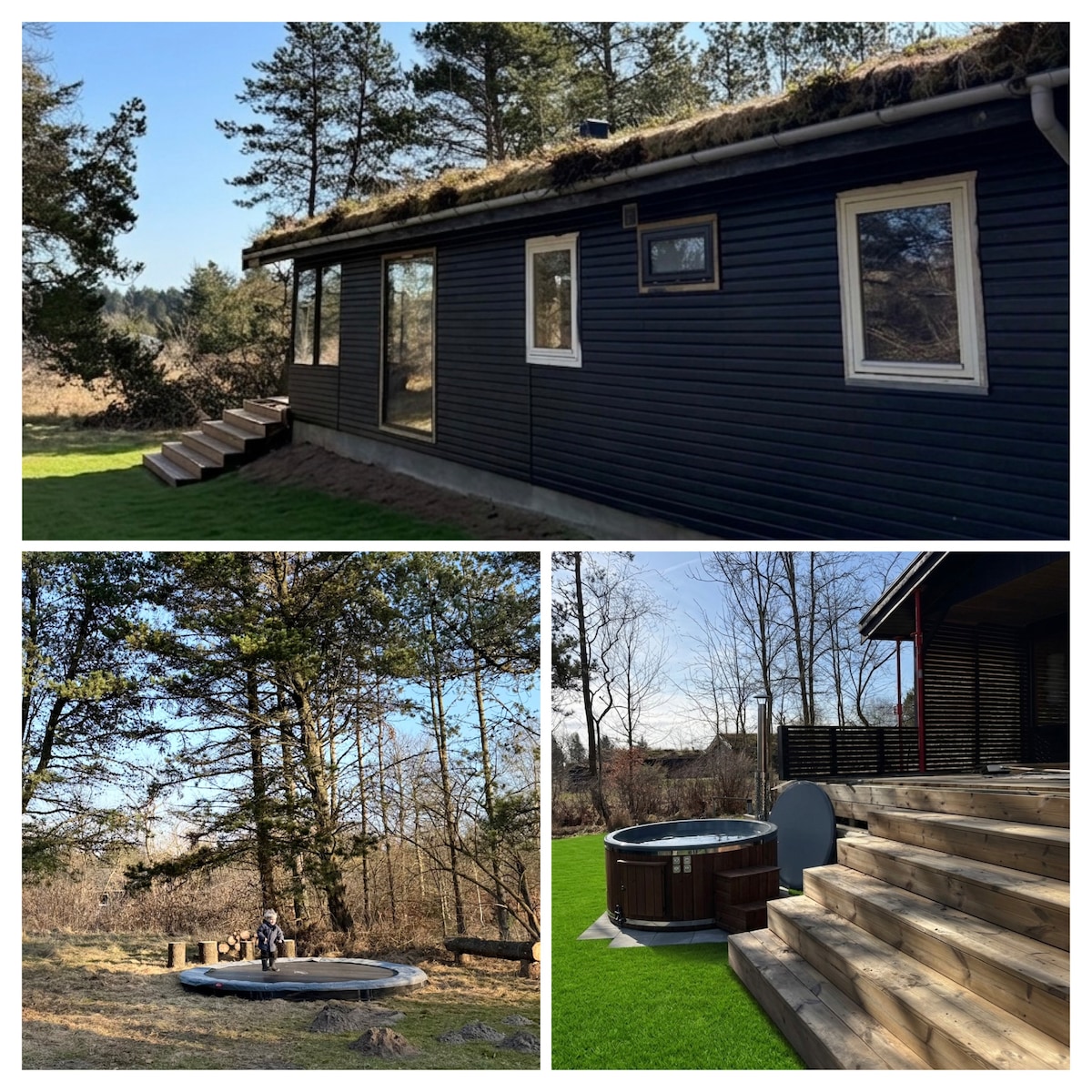 자연과 하나가 된 평화로운 지역에 위치한 아늑하고 큰 새롭게 리모델링된 여름 별장. 해변, 숲, 리조트 생활, MTB, 골프, 파델, Fårup Sommerland에 관심이 있으신가요? 아니면 모든 것에서 벗어나 여행을 떠나시나요? 모두를 위한 것이 있습니다. 숙소는 최대 2가구(9명)까지 휴가를 즐길 수 있는 공간과 공기를 갖추고 있으며, 원래 스타일을 유지하고 있습니다. 날씨에 상관없이 야외 샤워, 온수 욕조, 냉수 욕조, 사우나를 즐길 수 있습니다. 집, 별채 및 간이 차고는 쉼터를 이루며, 나무 테라스와 작은 잔디밭으로 연결되어 다양한 야외 활동을 즐길 수 있습니다.