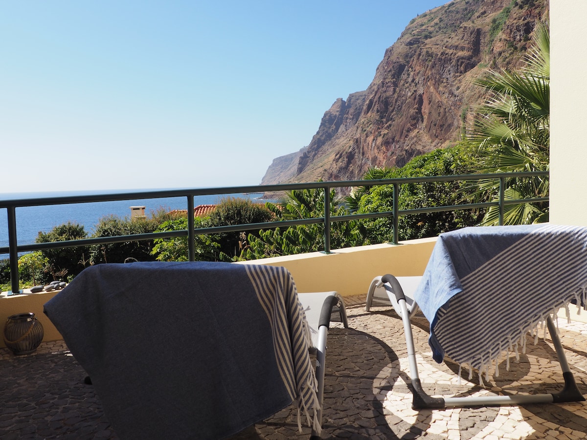 THE OCEANFRONT HONEYMOON STUDIO is the fourth of four apartments at Wave House. T0 - Open floor plan - fully equipped kitchen, double bed, eating area, large balcony with commanding view of coastline and sea, bathroom with shower, WIFI, Shared laundry facilities with a washing machine and dryer. Shared garden and in backyard.