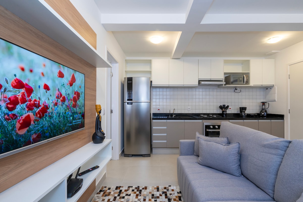Esse apartamento une conforto, praticidade, economia e diversão! Localizado perto de shopping, mercados, restaurantes, metrô e consulado, ele acomoda até 4 hóspedes com utensílios completos. Para o entretenimento, TV Smart com streaming, internet de 500 MB, PS4 com 3 jogos e uma charmosa área do café. E claro, cada hóspede recebe um mimo especial, porque cada cliente é único e merece ser bem recebido. Adoramos pets, mas neste local não temos espaço para acomodá-los. Quem sabe no próximo...