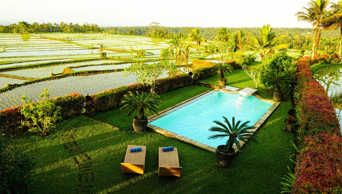러브 아쉬람 빌라에서 아름다운 논을 내려다보세요