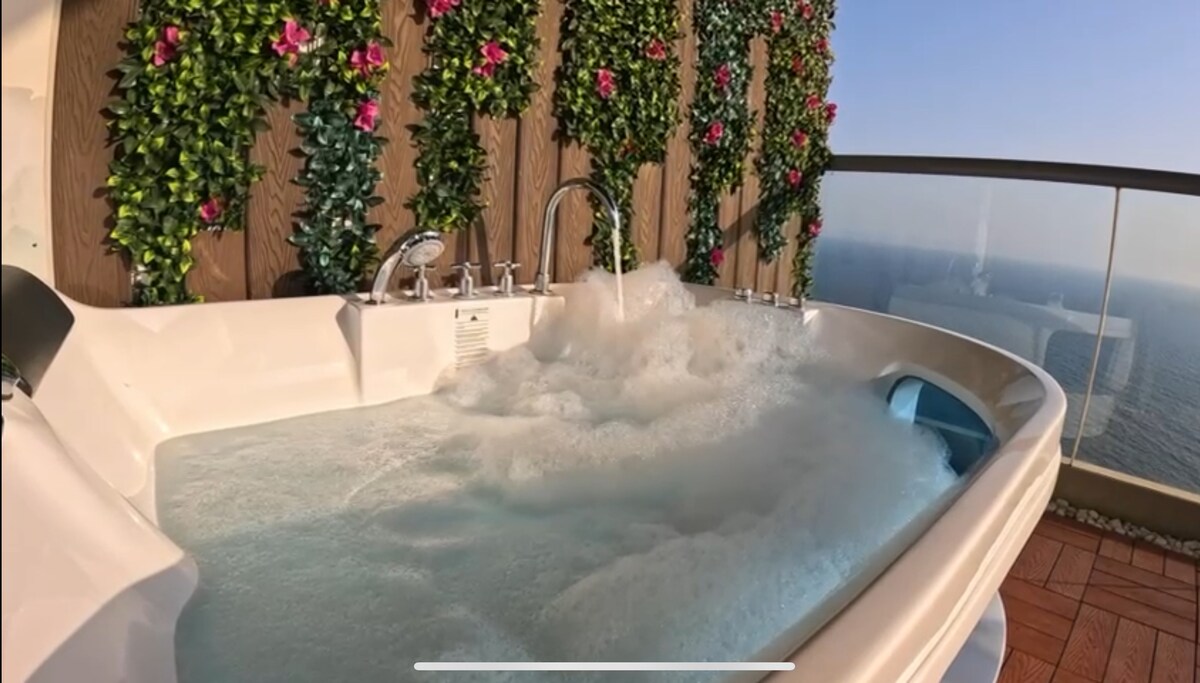 개방형 로프트 디자인과 두 각도에서 바다와 도시의 드문 파노라마 전망을 자랑하는 제다의 다막 타워에 위치한 고급스러운 문 스위트. 제다의 최고급 지역에 위치하고 있으며 제다 코니쉬 북부의 한복판에 위치하고 있습니다. 여러 개의 조명과 수도구가 있는 독특한 폭포 자쿠지와 등 마사지를 제공하며 바다를 바로 볼 수 있습니다. 넓은 발코니에 걸린 그네에서 낭만적인 시간을 즐기세요. 이 스위트에는 넓은 발코니, 스마트 스크린, 완비된 주방, 세탁기, 5G 인터넷, 셀프 체크인, 이벤트 코디네이션 서비스가 있어 잊지 못할 경험을 선사합니다!
