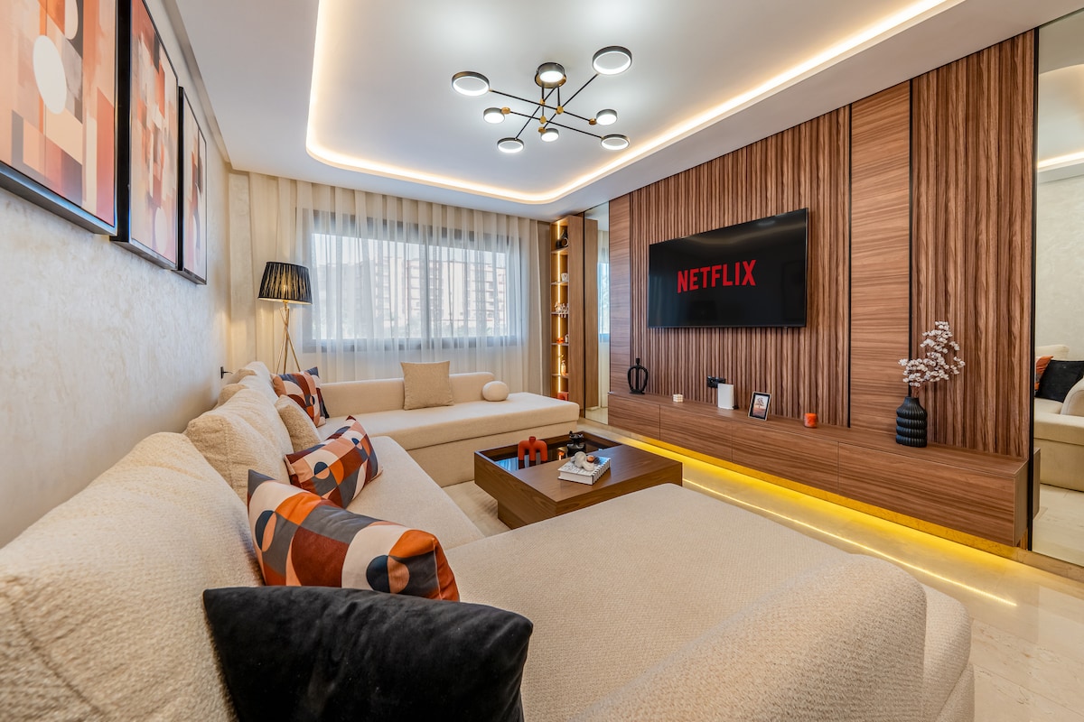 Welcome to our thoughtfully designed one-bedroom apartment with pool, where positive energy flows through every inch. in the center of Gueliz 10 min walk from carré Eden and the 5 minutes from the train station. Perfectly situated, you'll be surrounded by an array of restaurants, cafes, and shops. Well Equipped, we've taken care of every detail, high-speed internet, IP TV, Netflix, ensuring a seamless experience and make your stay stress-free