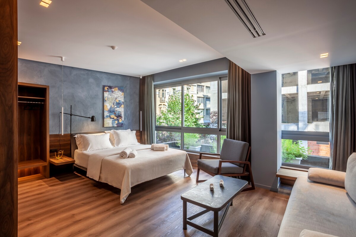 - 아리스토텔루스 광장 옆 거리에 위치한 프라임 위치 - 바닷가에서 몇 걸음 거리 -모든 장소/장소까지 도보로 이동 가능 - 충분한 자연 채광을 갖춘 현대적이고 깨끗한 디자인. 커다란 창문 -리스리스 액세스 용이 -방 암막 블라인드 - 난방/냉방용 인버터 에어컨 장치 - 고급 매트리스와 베개 -호텔 스타일의 욕실 - 숙박 중 전문적으로 청소 - 인근 바에서 나는 외부 소음 가능 -커플, 나홀로 여행자, 임원 또는 친구에게 완벽한 숙소
