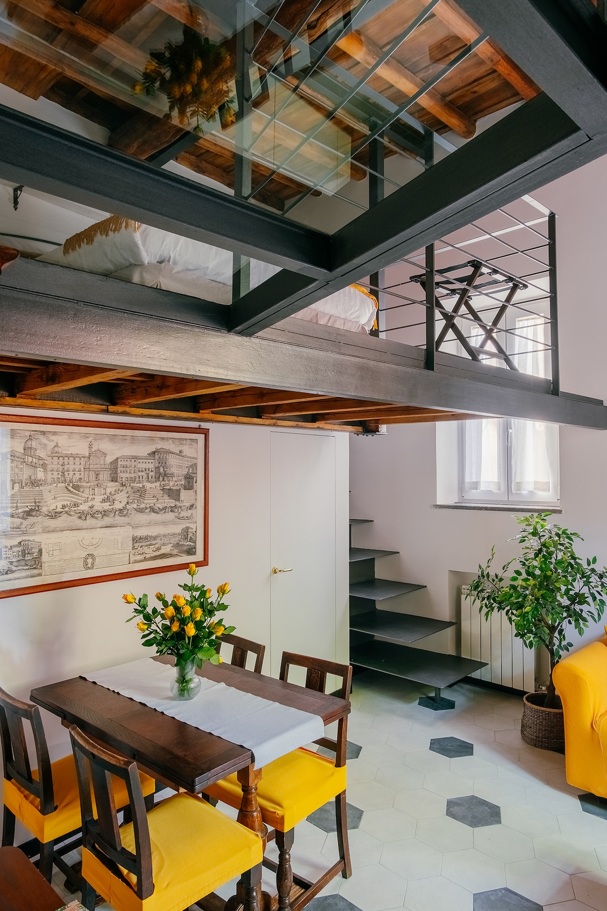 Bring the past to life in this recently renovated apartment located in the most central part of Trastevere. It is characterized by a beautiful original ceiling with antique wooden beams restored to their natural honey color, a mezzanine with crystal inserts, XIXth century antique furniture, internal views of a beautiful garden below. Is a cute combination of the charm of the past with the inclusion of well-chosen modern elements which, will make your stay both fascinating and comfortable.