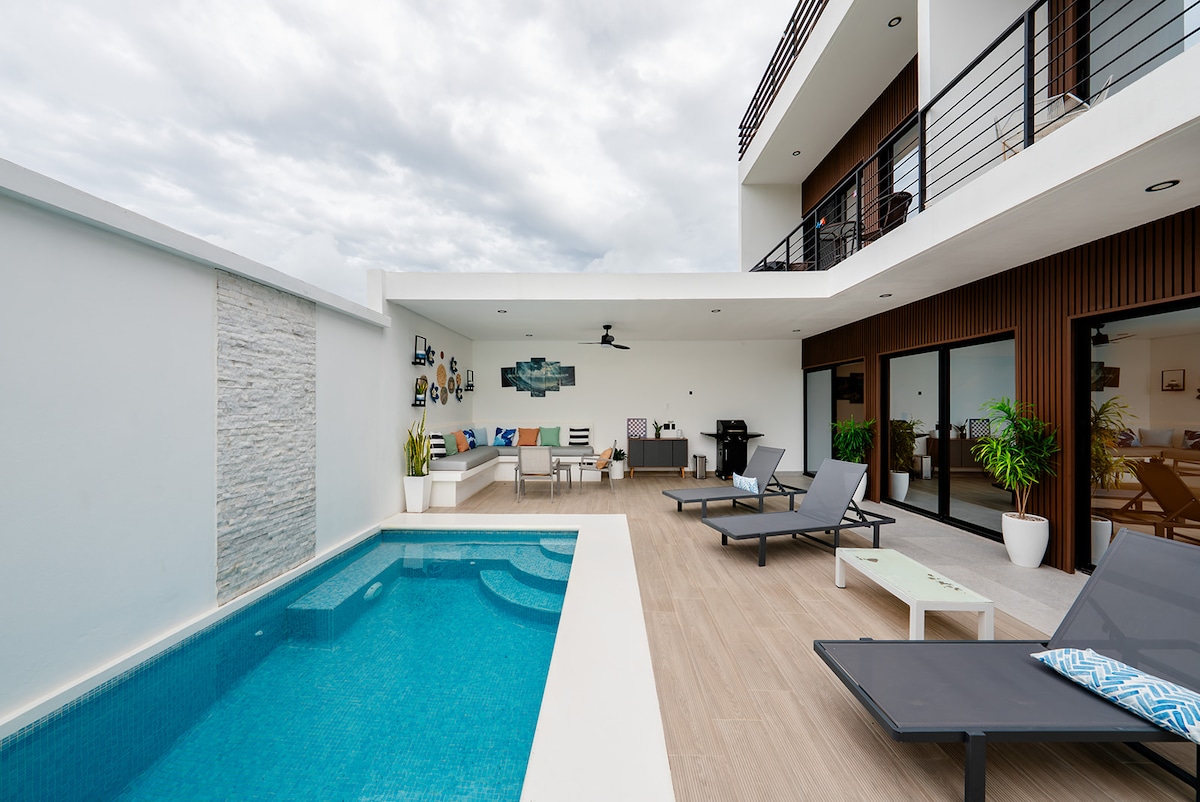 테라스가 있는 2층 대형 저택. 3BD/2BA. 7명이 편안하게 잘 수 있습니다. 마스터 침실에는 전용 욕실이 있는 새 킹 사이즈 침대가 있습니다. 두 번째 방은 두 개의 트윈룸을 갖추고 있으며 세 번째 방은 퀸사이즈 침대와 다른 트윈룸을 갖추고 있어 모든 공간이 넉넉합니다. 주방이 완비되어 있습니다. 빌라에는 수영장과 거실 밖의 공간이 있습니다. 하시엔다 이구아나는 프라이빗 골프 게이트 커뮤니티입니다. 케이터링은 다양한 음식 옵션으로 제공됩니다. 우리는 모든 식료품 쇼핑, 요리 및 청소를 합니다!