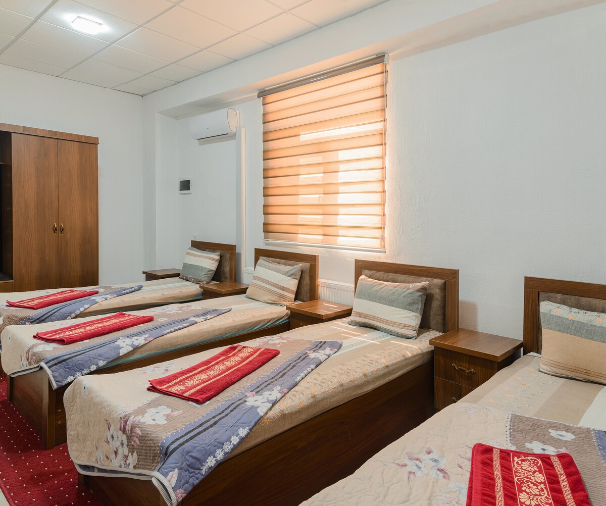 Уютный бутик-отель в центре Самарканда, рядом с площадью Регистан. Разные типы номеров подойдут для пар, семей, друзей и деловых гостей. В отеле есть ресепшн, быстрый Wi-Fi и всё необходимое для комфортного проживания. Отель сочетает современный комфорт и восточную атмосферу. Гости могут отдыхать на общей террасе с панорамным видом на Регистан — идеальное место для спокойного отдыха и вечернего чая с видом на легендарную площадь Регистан