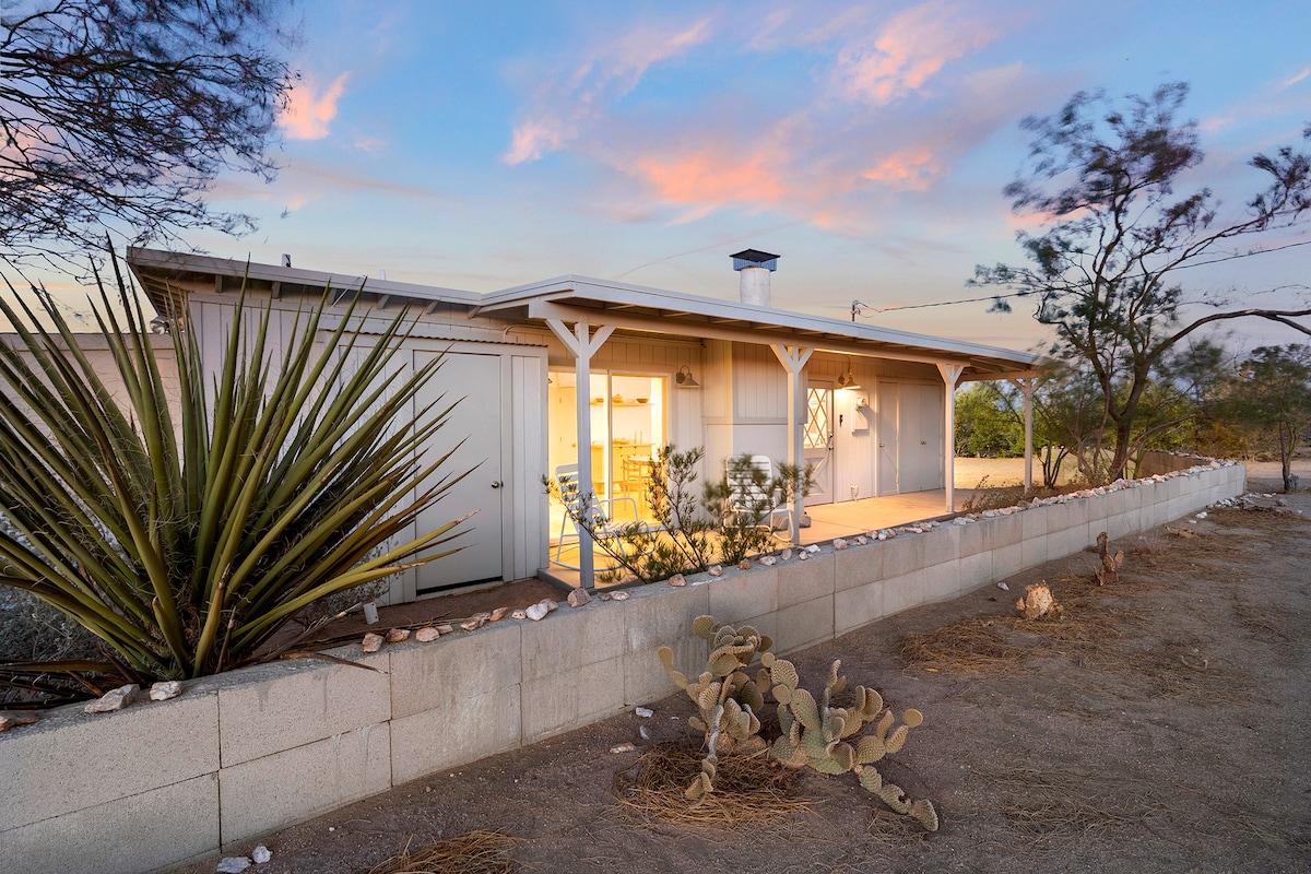 1961년 빈티지 사막 오두막에서 휴식을 취해보세요. 미드센추리 스타일의 매력과 모하비의 전설적인 전망이 어우러집니다. 미개발 BLM 토지 옆 25에이커의 부지에 자리한 숙소에서 일출을 감상하며 커피를 마시고, 밤에는 은하수를 감상하며, 사막의 고요함을 만끽하세요. 내부는 복고풍의 독창적인 디테일과 현대적인 편안함이 조화를 이루고 있습니다. 조슈아트리에서 몇 분 거리에 하이킹, 사운드 배스, 식사, 라이브 음악을 즐길 수 있는 Pappy & Harriet's. 평화로운 사막 휴양지가 준비되어 있습니다. 모하비의 추억을 만드세요. 편안하게 숙박을 즐기세요! SB 카운티 임대 허가: CESTRP-2020-00387
