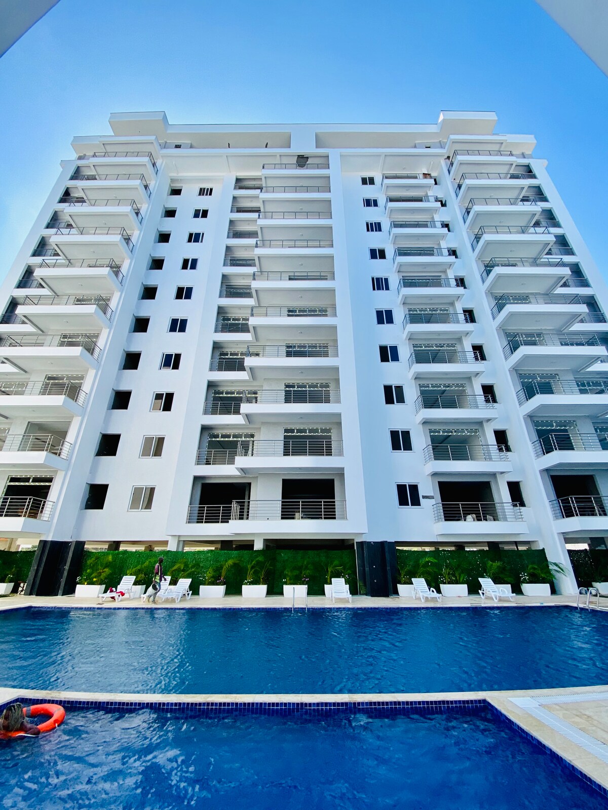 멋진 3베드룸 아파트, 해변까지 도보로 갈 수 있는 완벽한 위치. 가구가 완비된 이 숙소는 세련되고 시설이 완비된 주방과 설치된 에어컨의 편안함을 자랑합니다. 평면 스크린 TV에서 좋아하는 프로그램을 즐길 수 있는 초고속 와이파이. 이 숙소에는 정전 없이 전력을 공급할 수 있도록 완전한 예비 발전기가 마련되어 있습니다. 게스트는 수영장에서 휴식을 취할 수 있습니다. 어린이 전용 놀이 공간도 마련되어 있으며, 헬스장에는 모든 종류의 기구가 완비되어 있습니다.