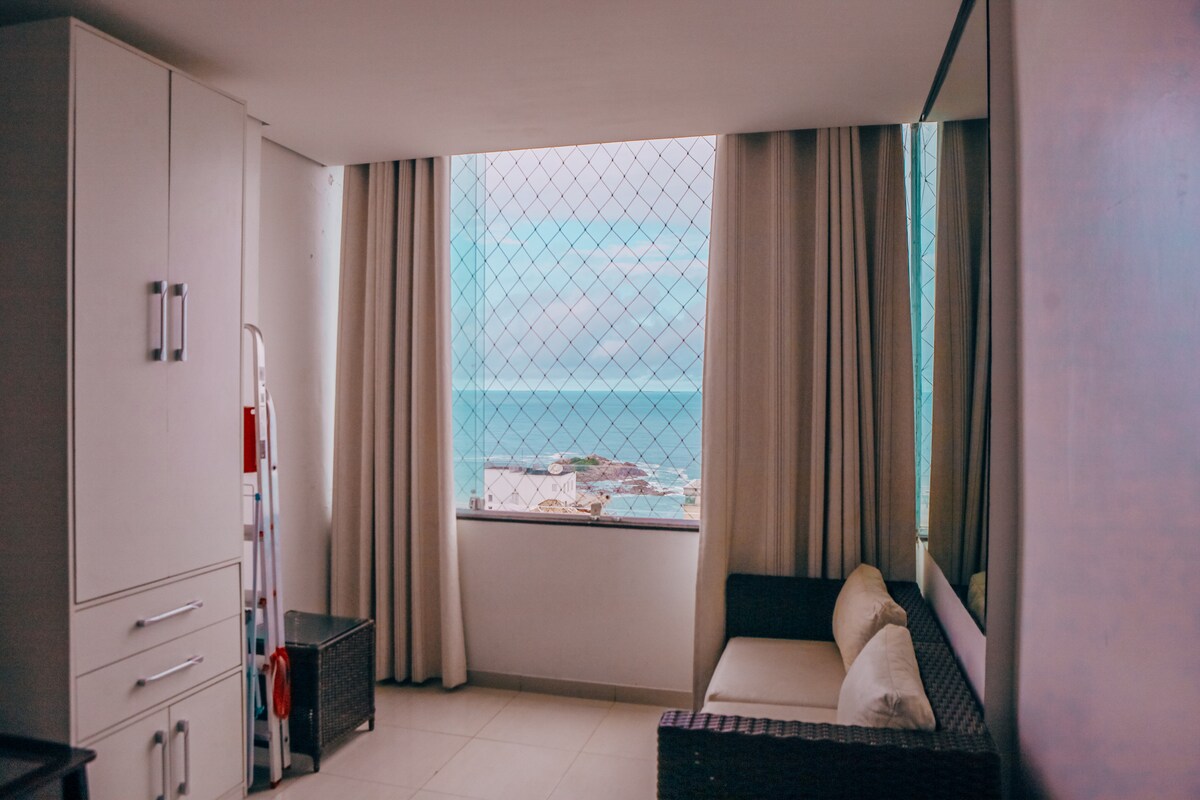 Flat moderno e confortável com linda vista do mar