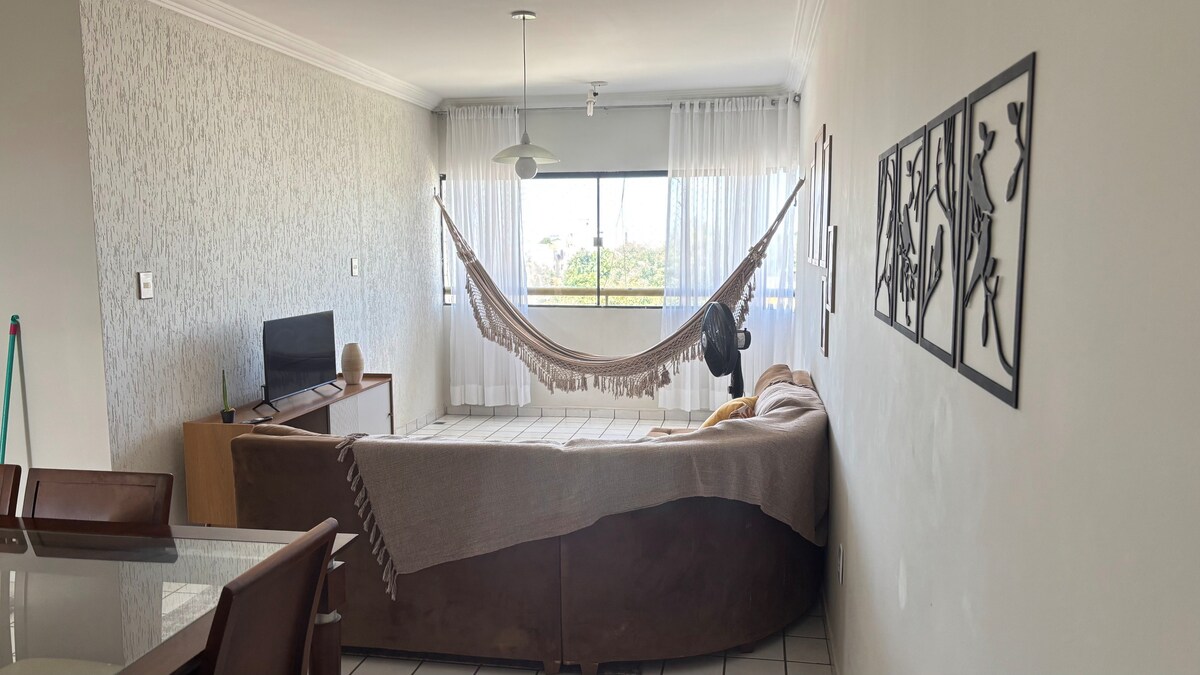 Elegante Ap bem localizado, cond com portaria 24 horas p, vc ter segurança!oferecemos para seu conforto, ar-condicionado nos 2 quartos e na sala , toalhas de boa qualidade, grandes e macias, lençóis de algodão macios p/um sono tranquilo, ap é completo de tudo, cafeteira elétrica, filtro de água, air fryer, microondas, etc, vc pode clicar no meu perfil e ver os outros aps, ap no 3 andar, vc terá o privilégio de um por do sol da janela da cozinha e a vantagem do silêncio, sacada com torno e rede.